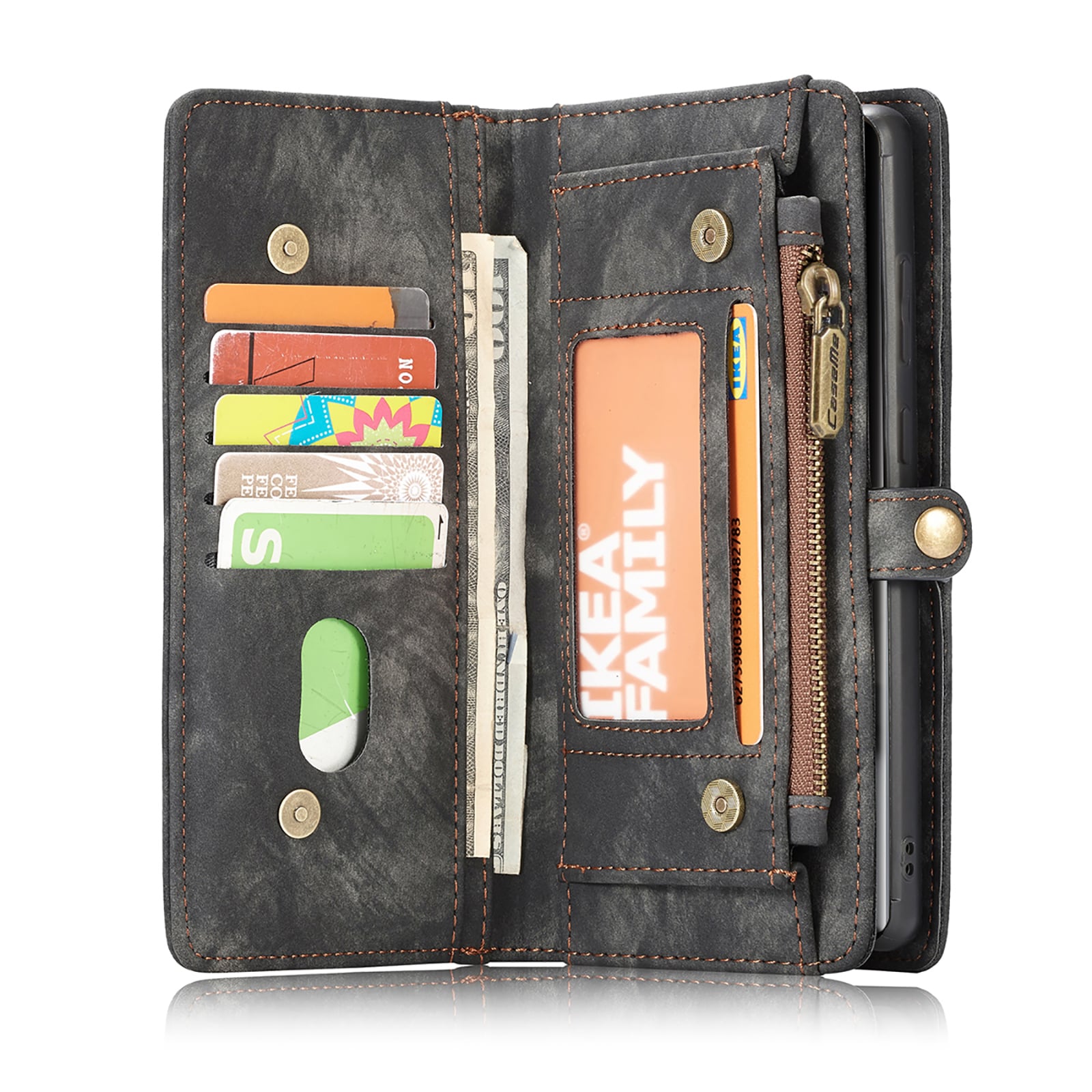 CaseMe mobiletui med magnetisk deksel og ekstra romslig lommebok med mange kortlommer til Samsung Galaxy S22 Ultra. Lommeboken har flere kortlommer, en seddellomme og en myntlomme med glidelås.