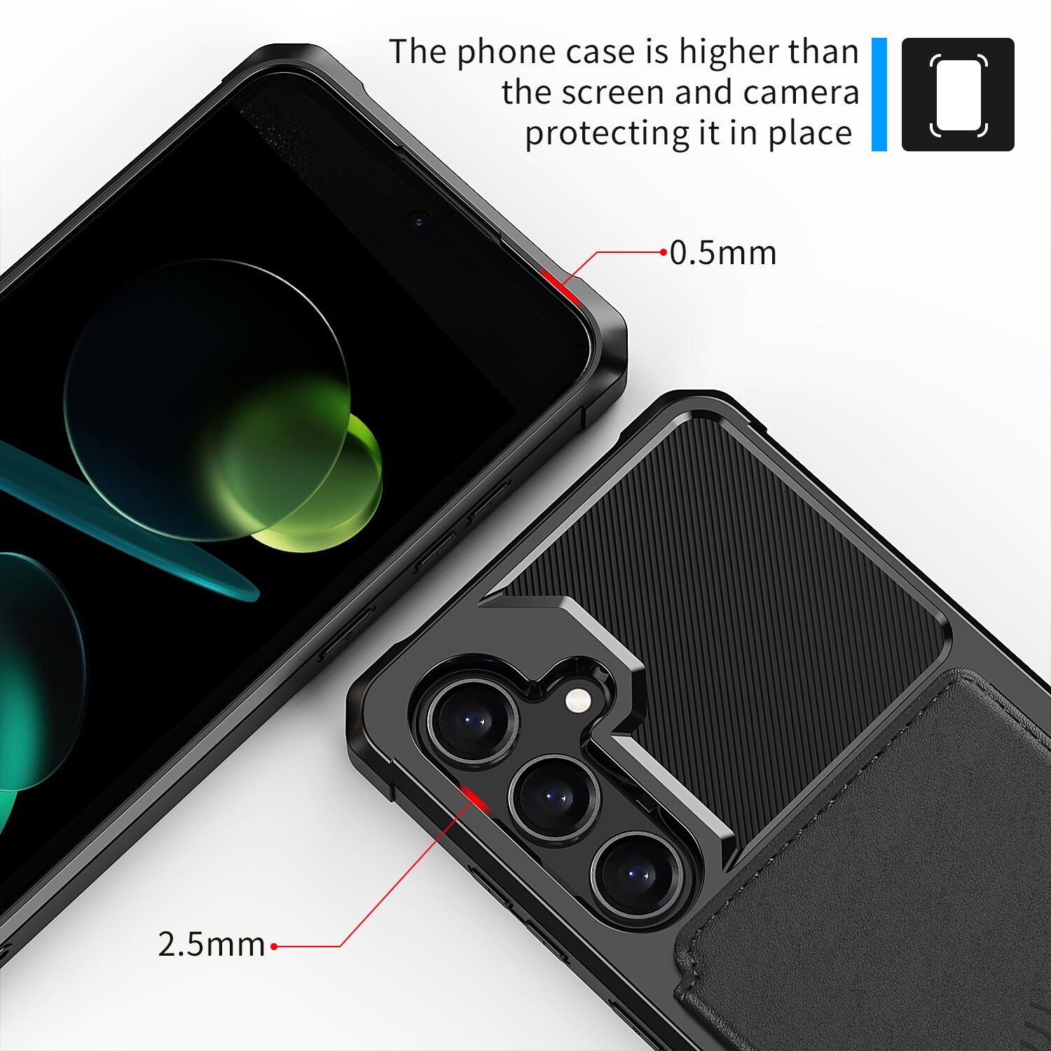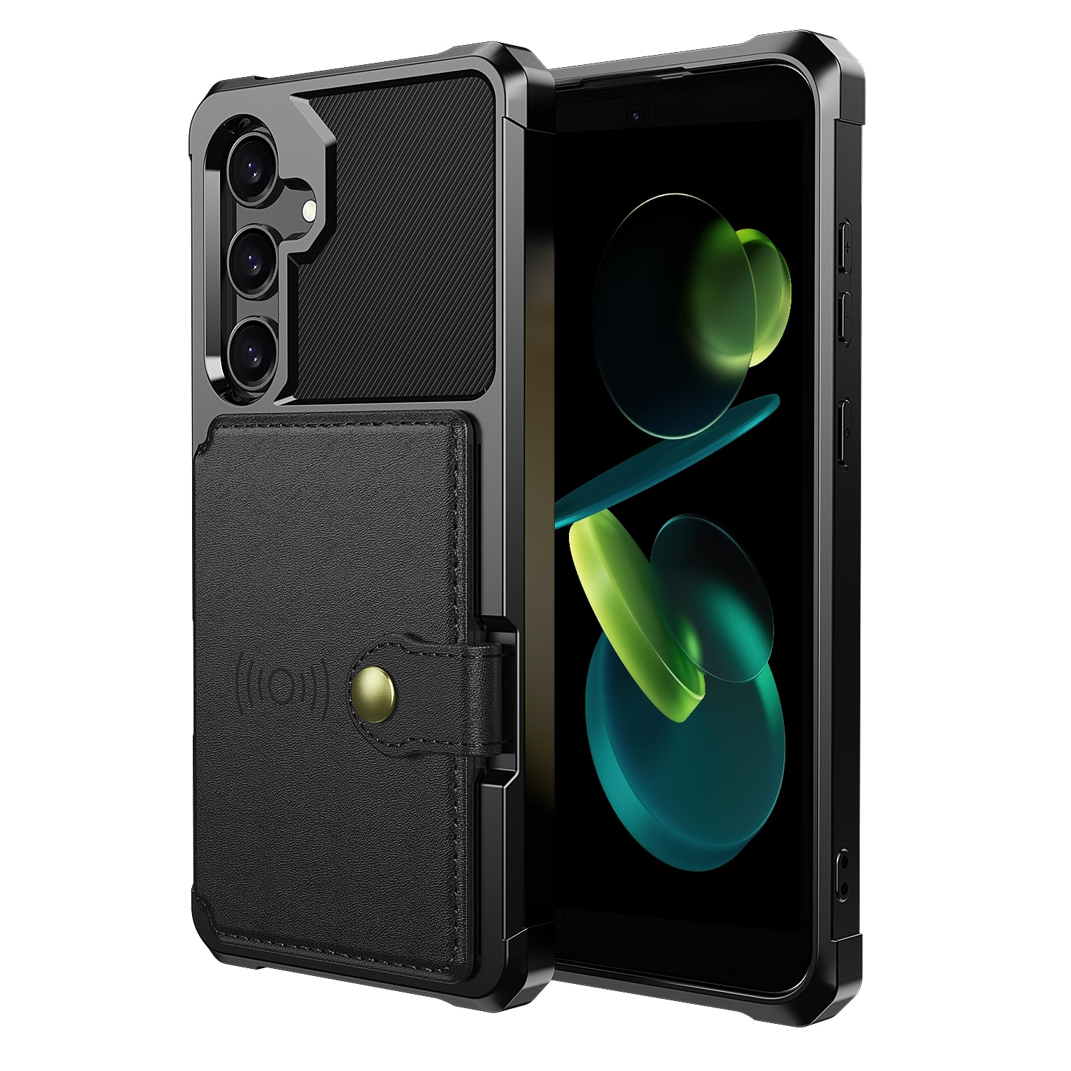 Støtdempende mobildeksel med skjult kortholder på baksiden. Dekselet har et stilig design og forsterkede hjørner for den beste beskyttelsen.