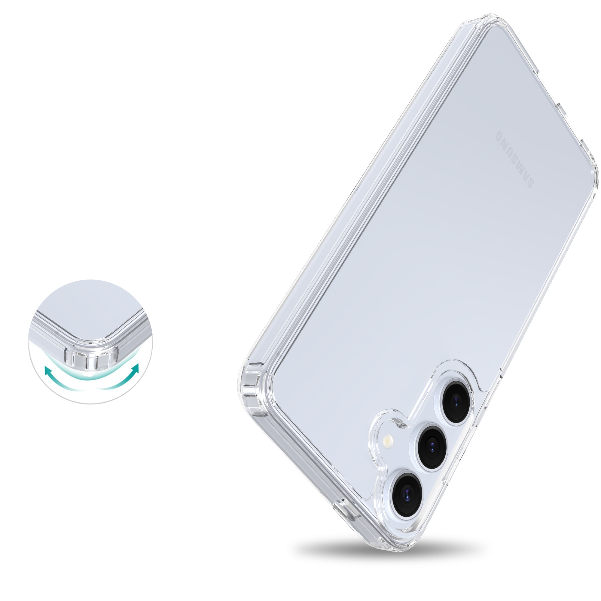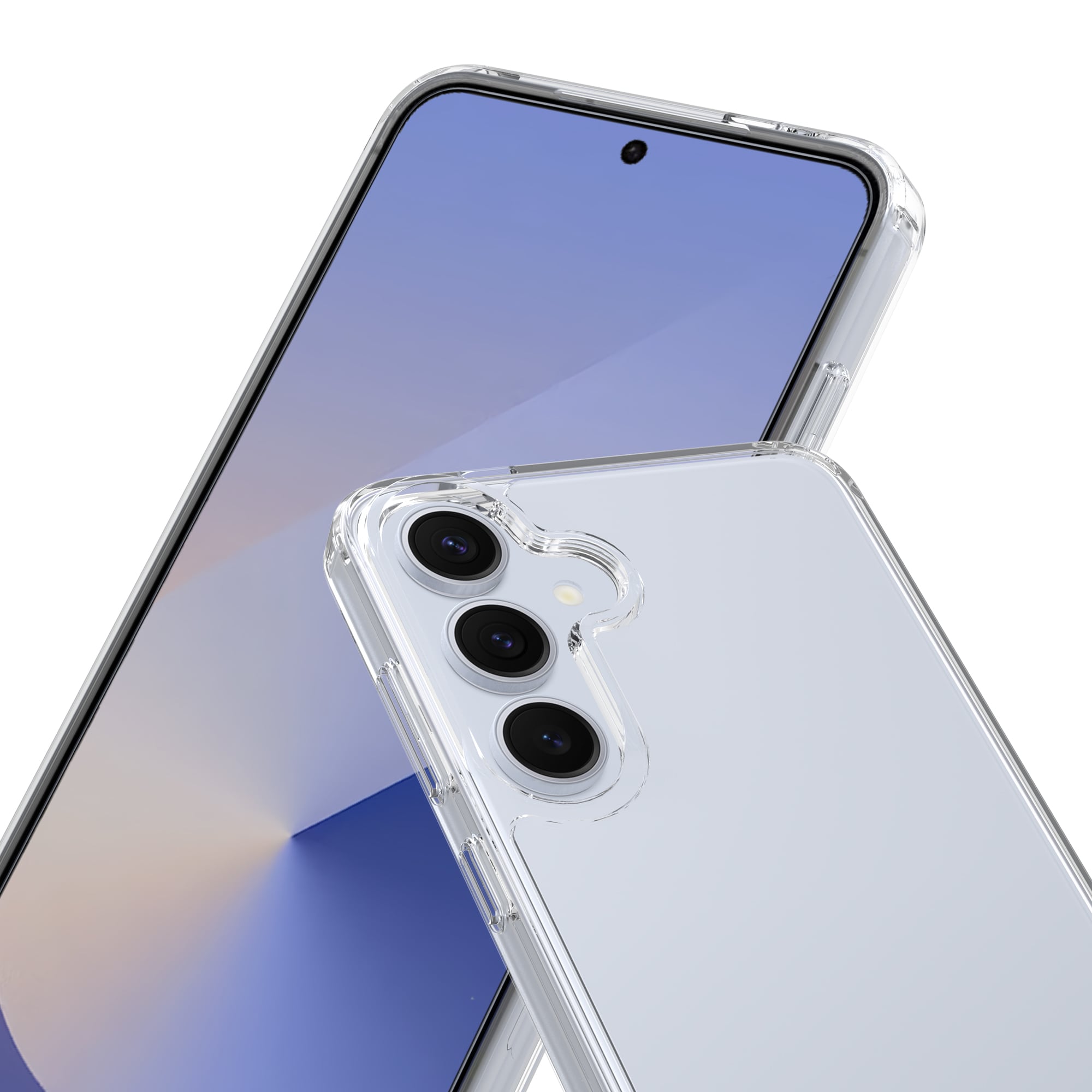 Transparent deksel fra Mobique til Samsung Galaxy S25 Plus. Dekselet er designet for å beskytte telefonen effektivt mot skade uten å gjøre den tung og stor. Baksiden av dekselet er laget av hard plast og sidene av støtabsorberende TPU. Sammen gir det en utmerket støtbeskyttelse som holder telefonen hel.