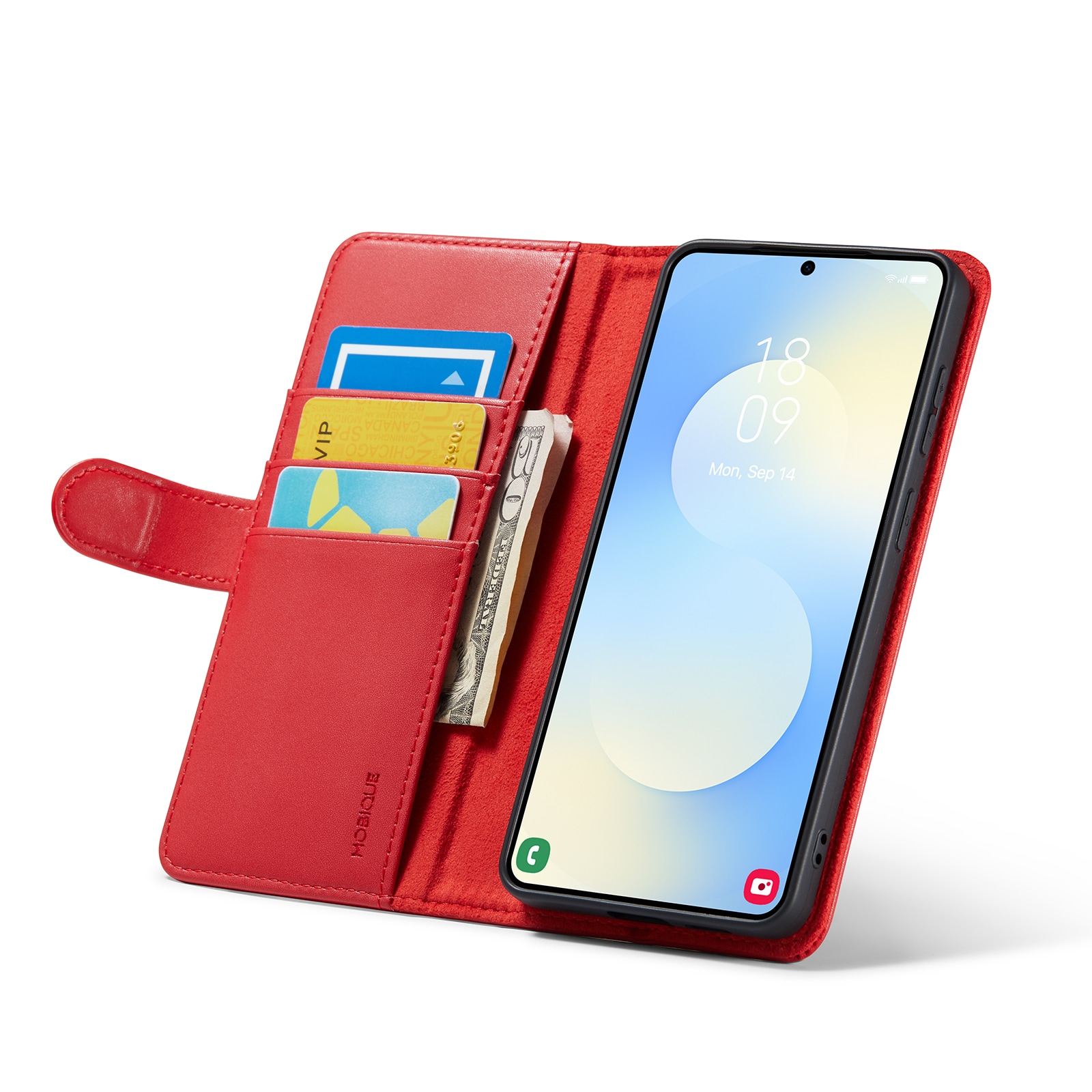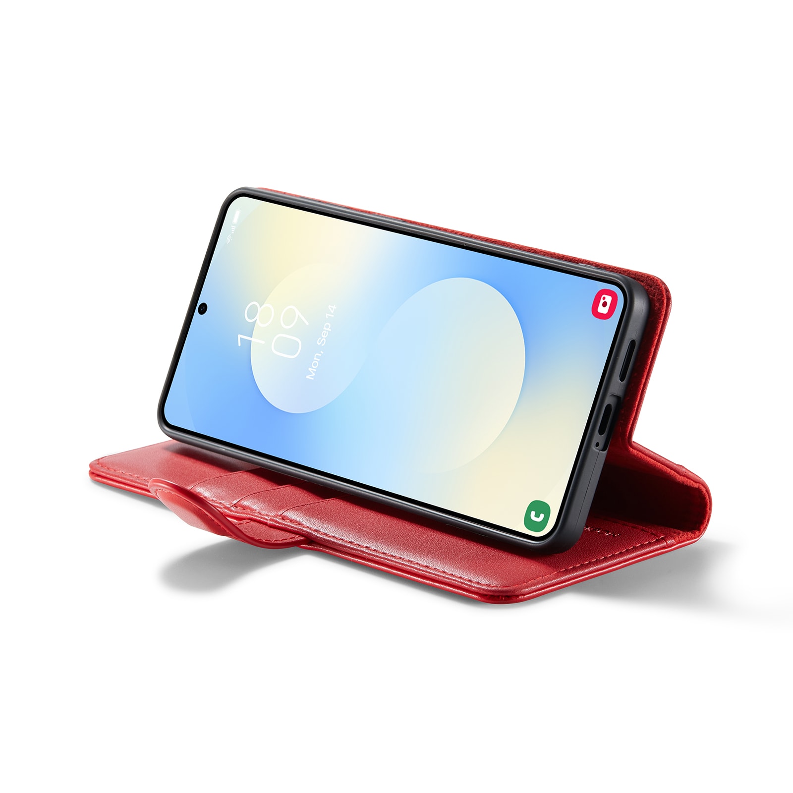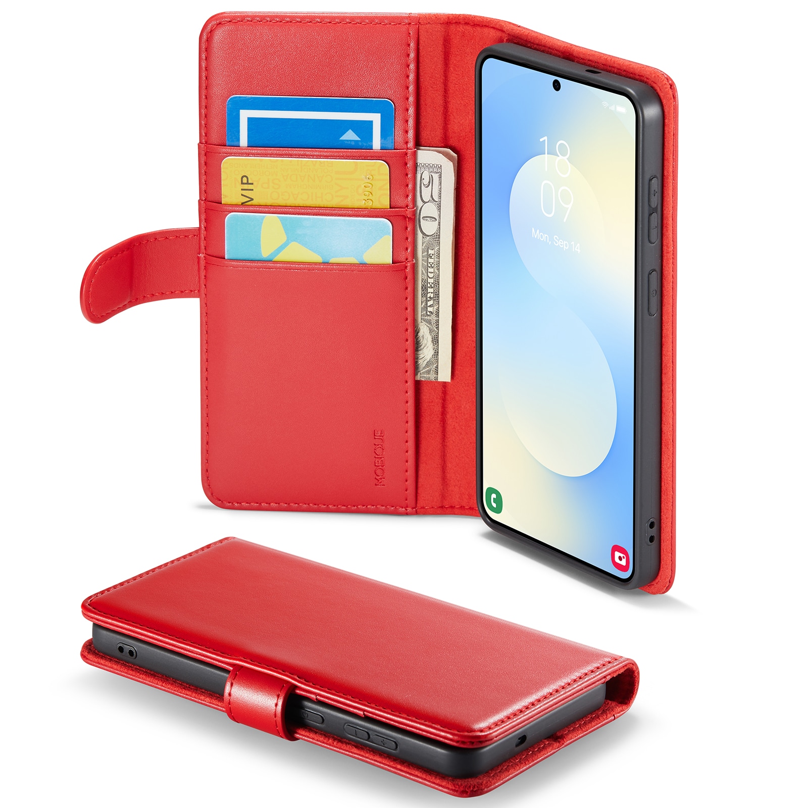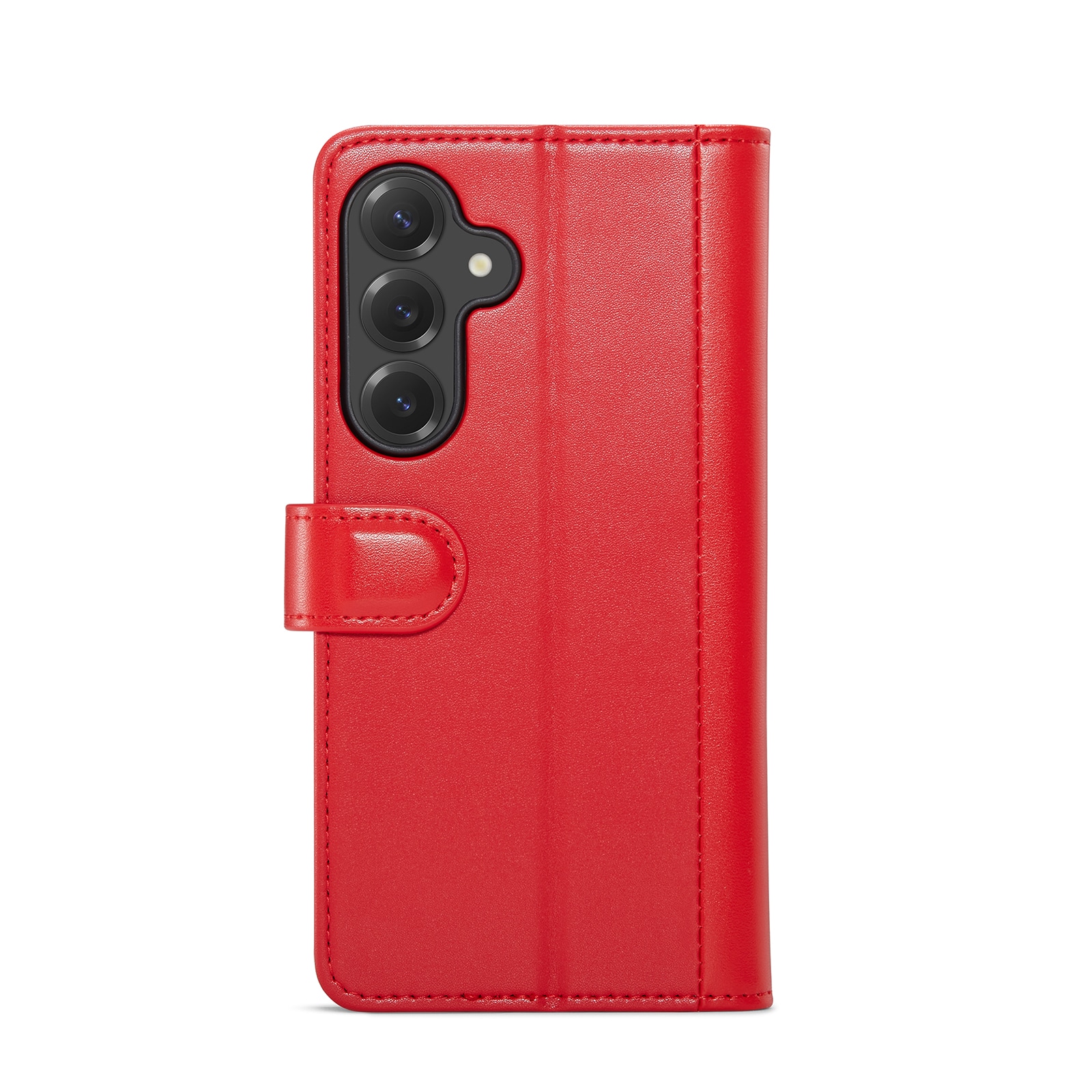 Mobilt lærveske i ekte lær til Samsung Galaxy S26 Plus. Vesken beskytter hele telefonen og har en romslig lommebok på innsiden av dekselet. Lommeboken har tre kortlommer og en seddellomme.