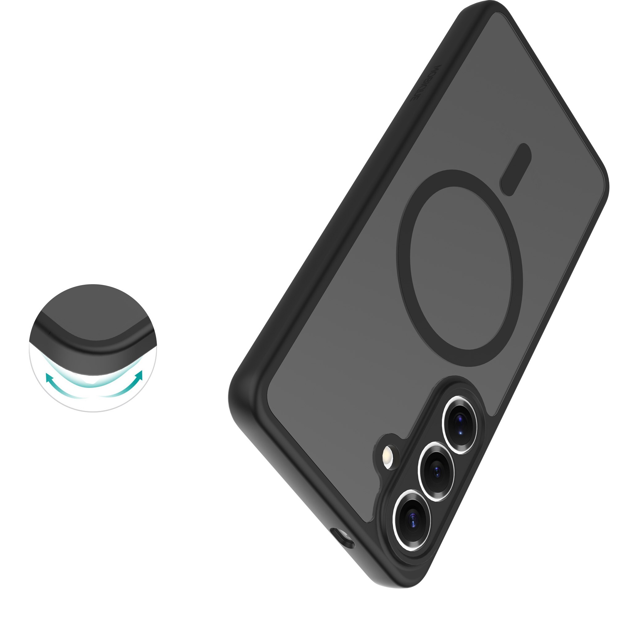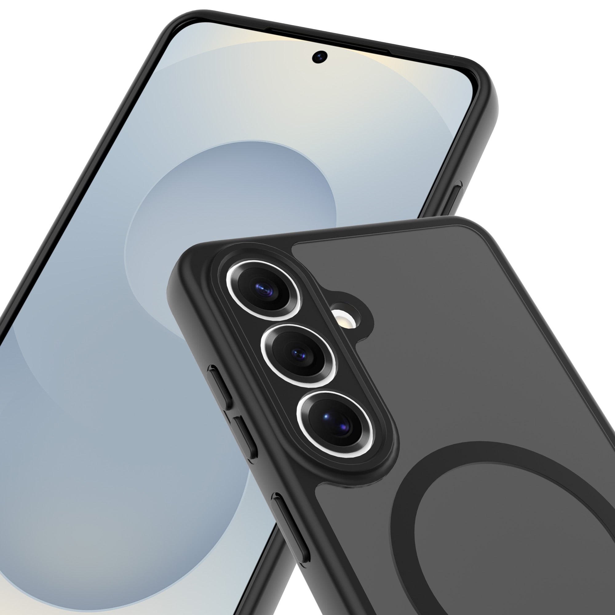Hybridskall med magnetisk ring for Samsung Galaxy S26 Plus fra Mobique. Dekselet har en stilren frostet finish og er utstyrt med en magnetisk ring på baksiden. Ringen gjør det enkelt å bruke dekselet sammen med MagSafe-kompatibelt tilbehør, som ladere og kortholdere.