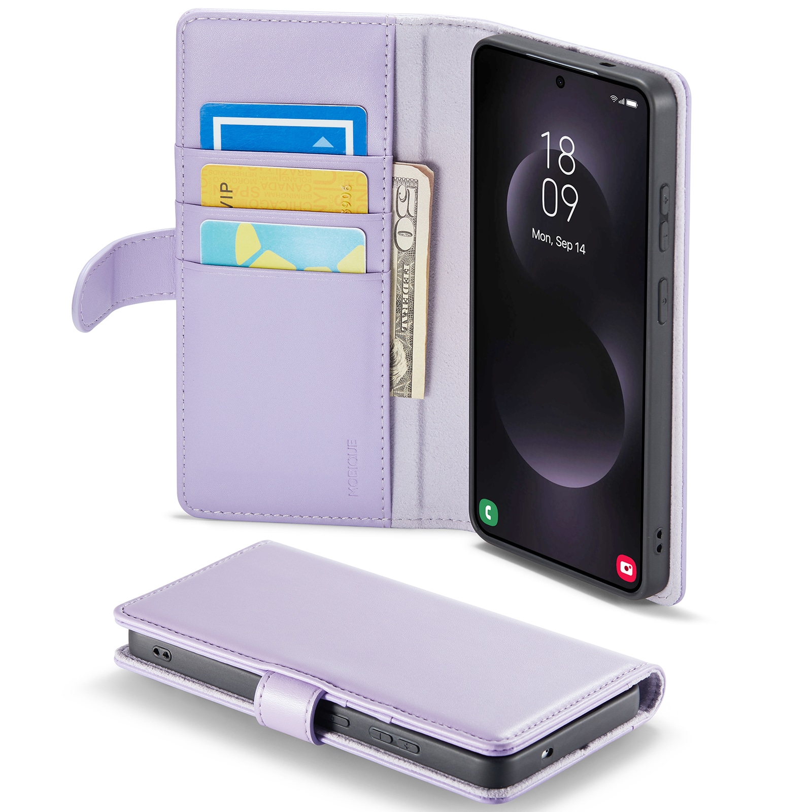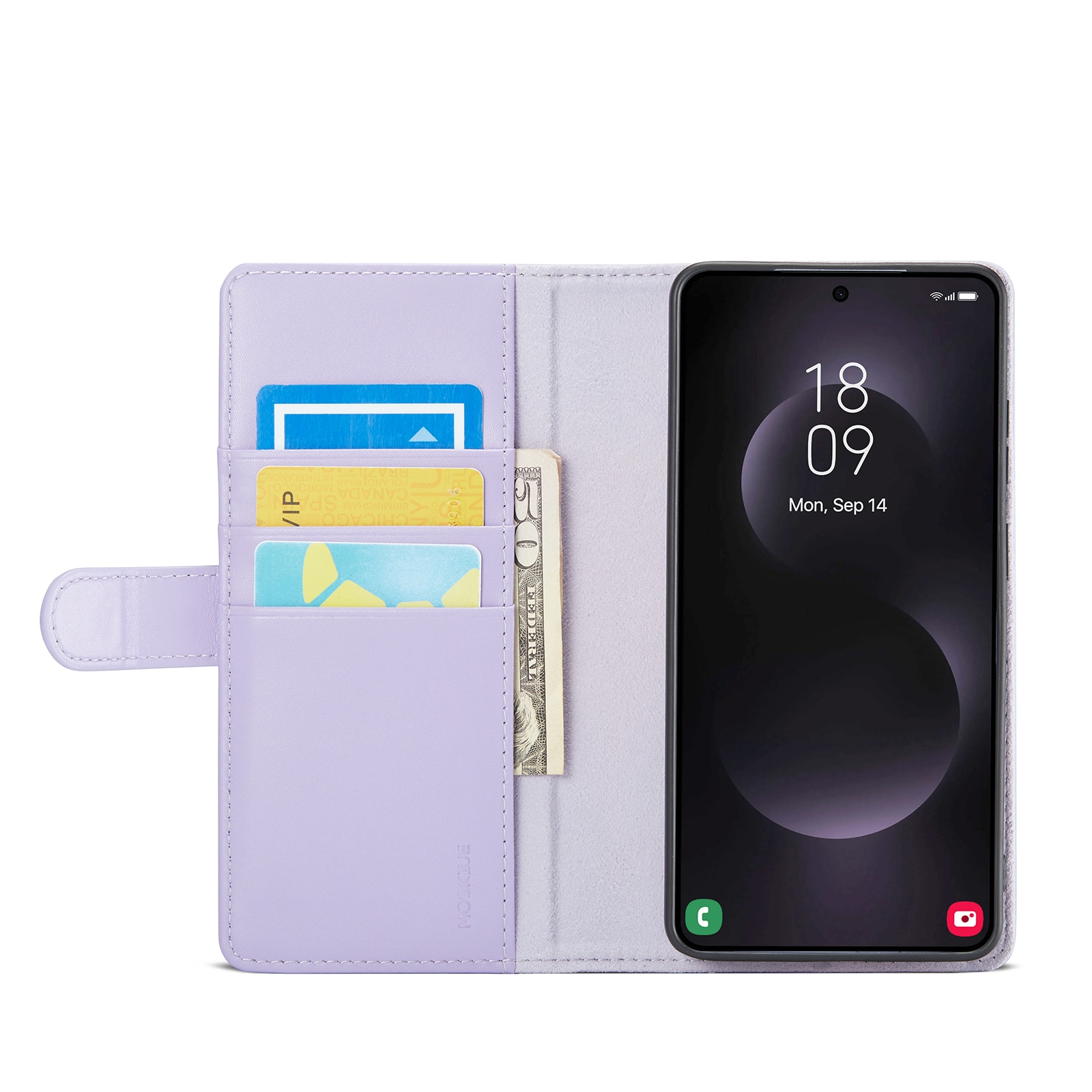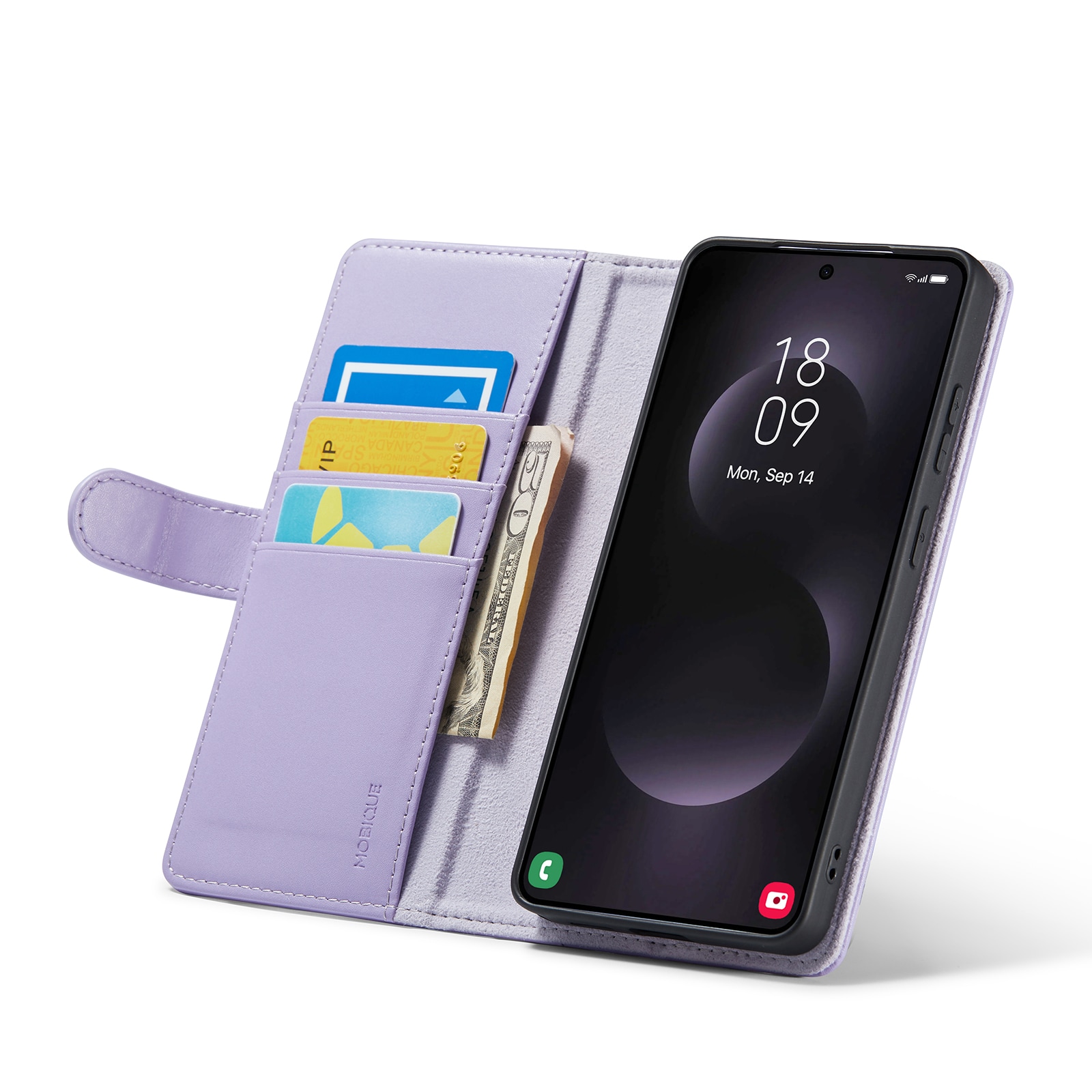 Lommeboksvesken kan lages om til et stativ for telefonen din, perfekt når du eller din familie ser på film eller serier.