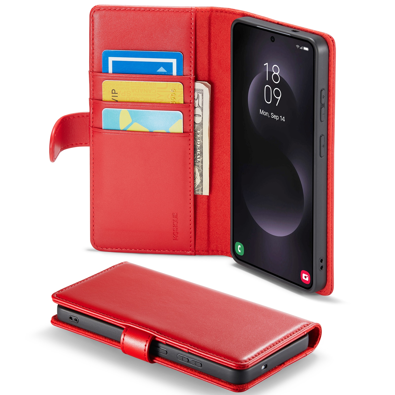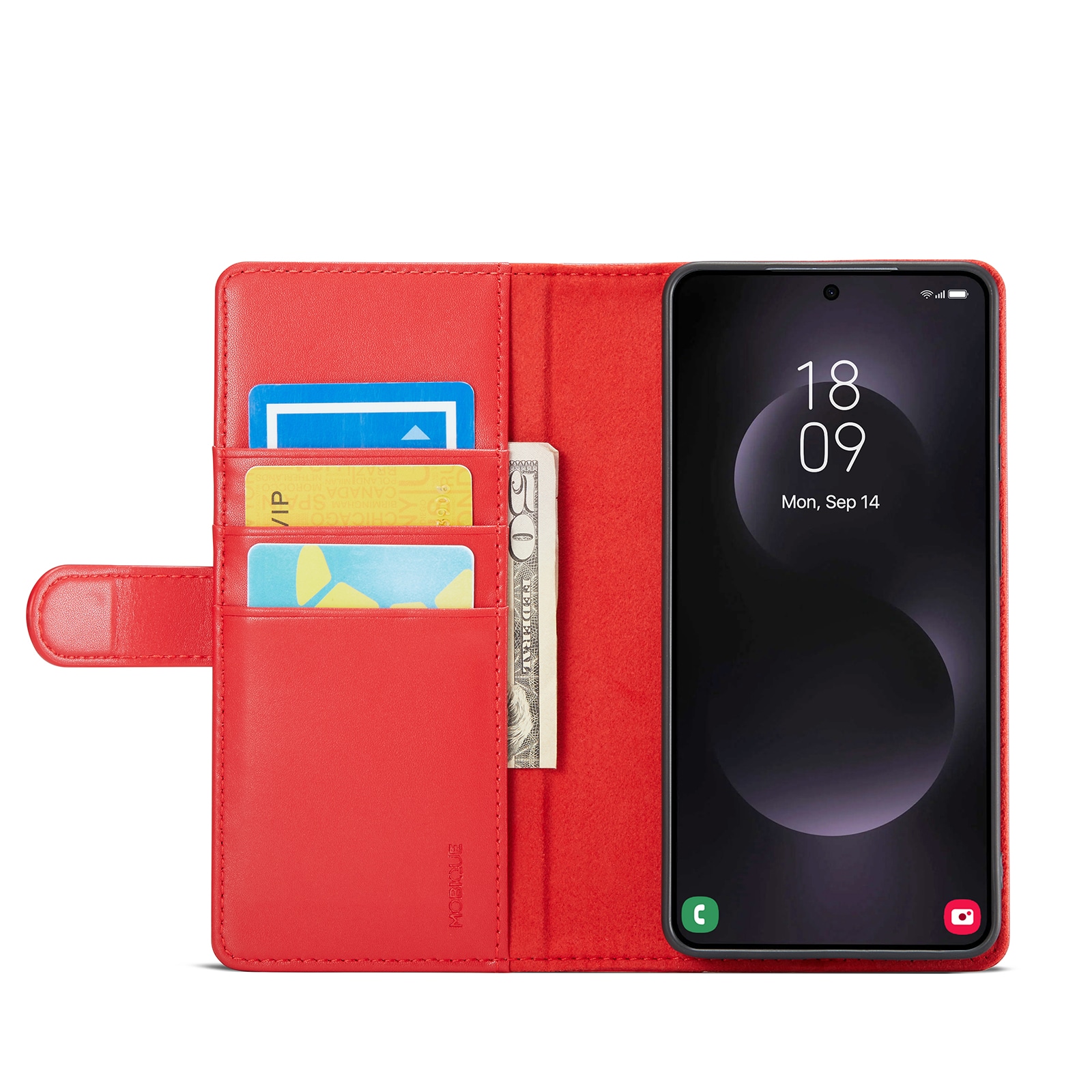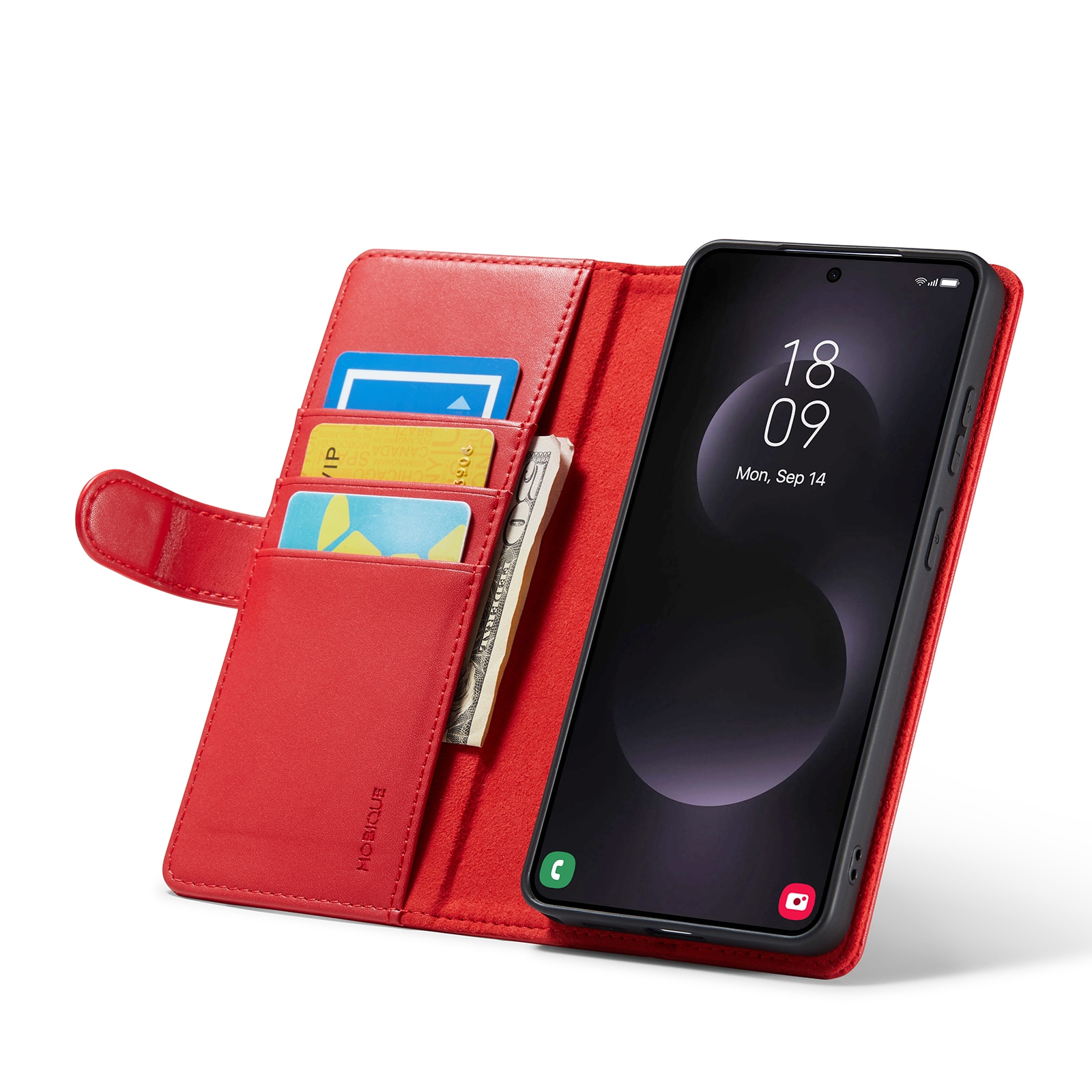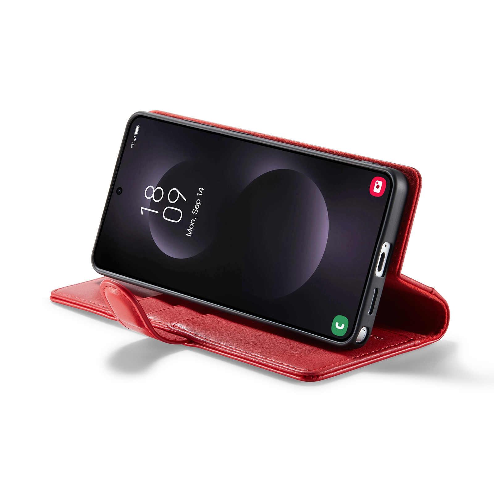 Lommeboksvesken kan lages om til et stativ for telefonen din, perfekt når du eller din familie ser på film eller serier.