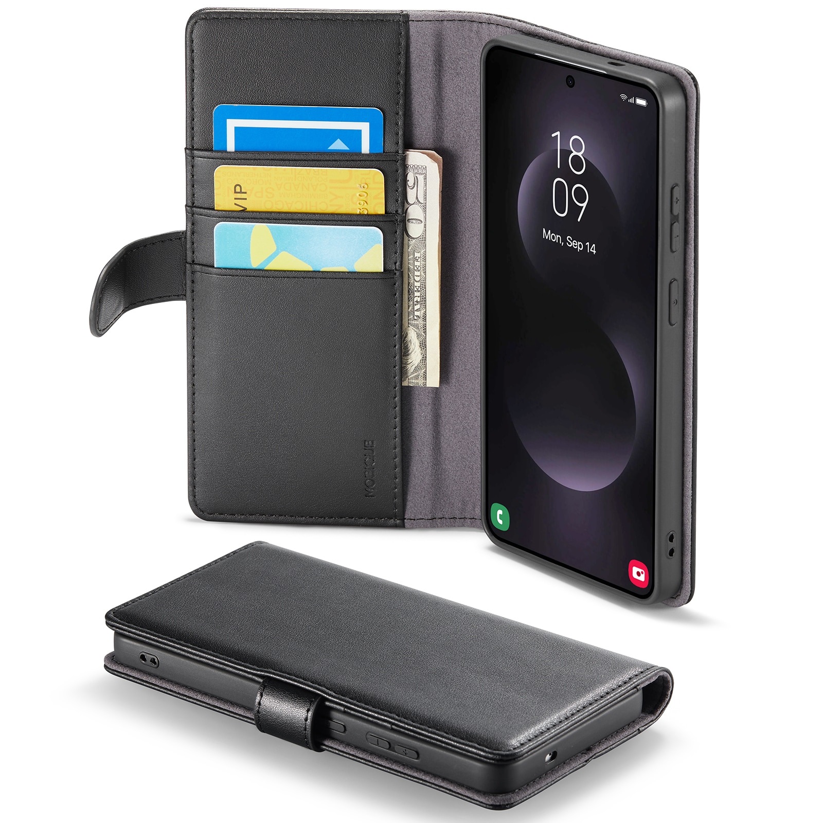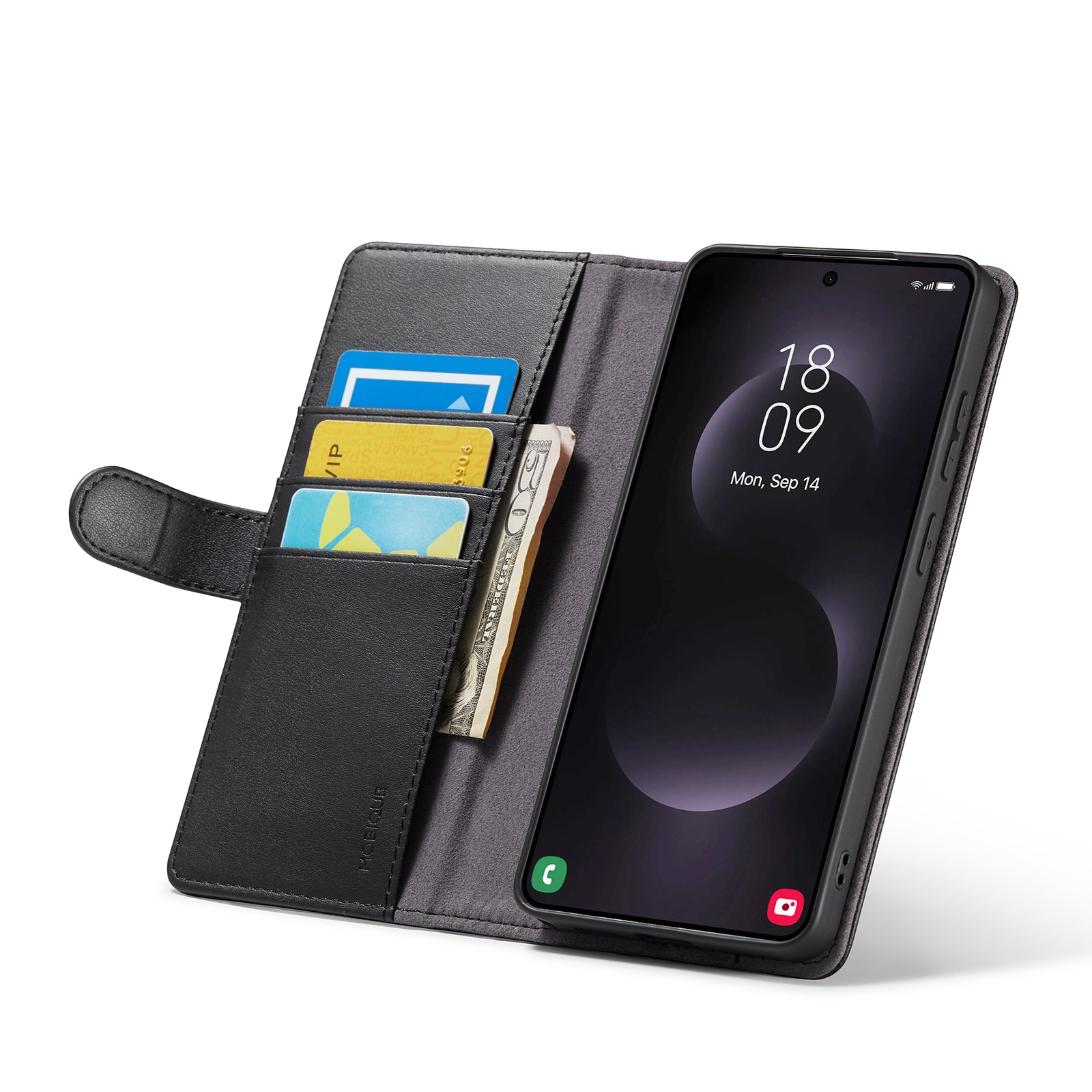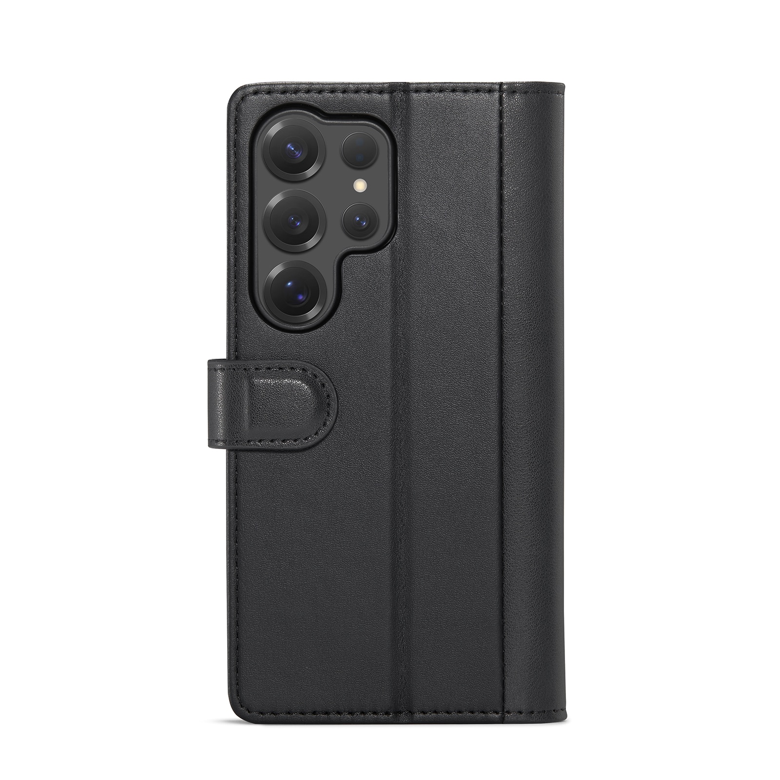 Mobilt lærveske i ekte lær til Samsung Galaxy S26 Ultra. Vesken beskytter hele telefonen og har en romslig lommebok på innsiden av dekselet. Lommeboken har tre kortlommer og en seddellomme.