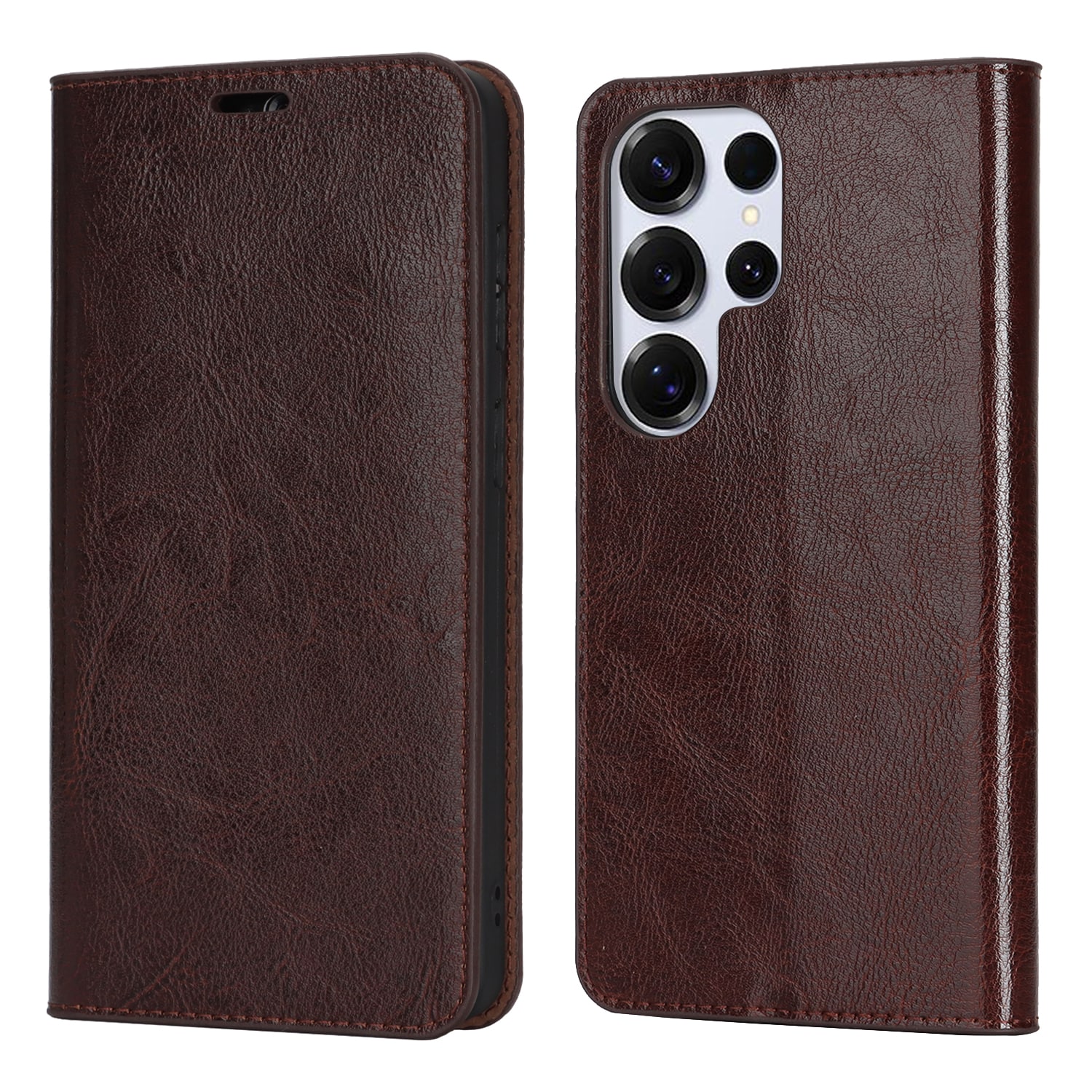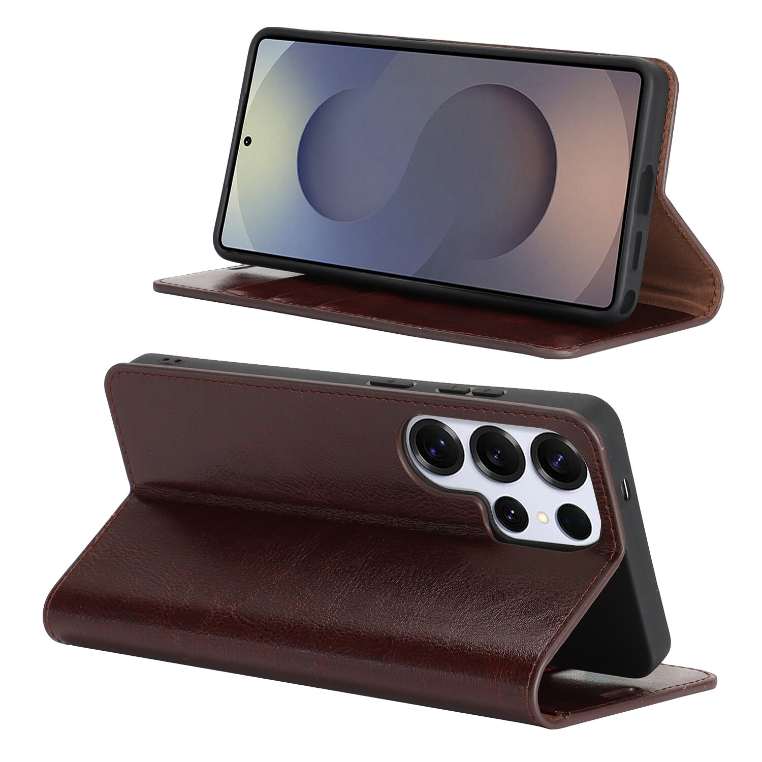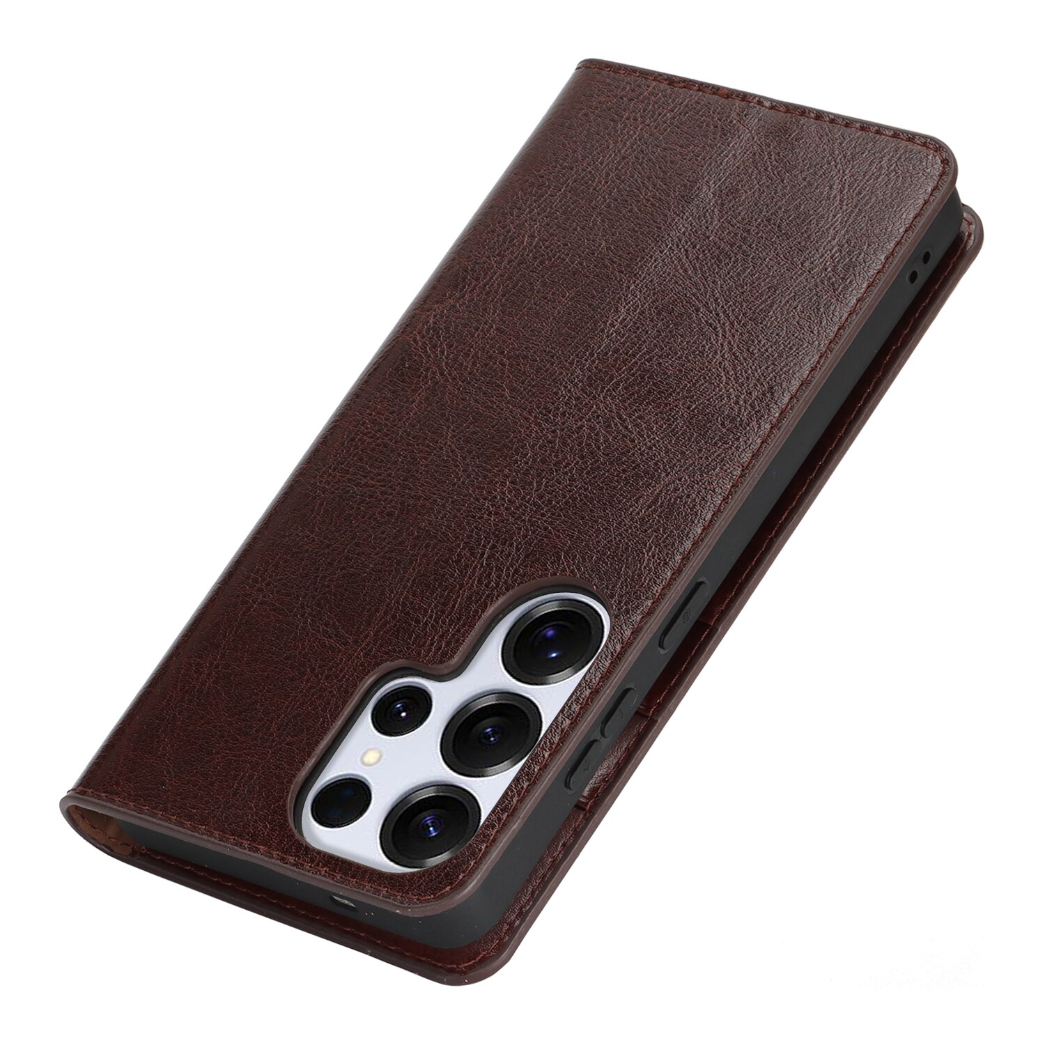 Beskytt din Samsung Galaxy S26 Ultra med et etui i ekte skinn. Til tross for den slanke og smarte designen, har etuiet 3 kortlommer og 1 seddellomme på innsiden av lokket. Telefonen festes trygt i et fleksibelt deksel som holder den sikkert på plass.