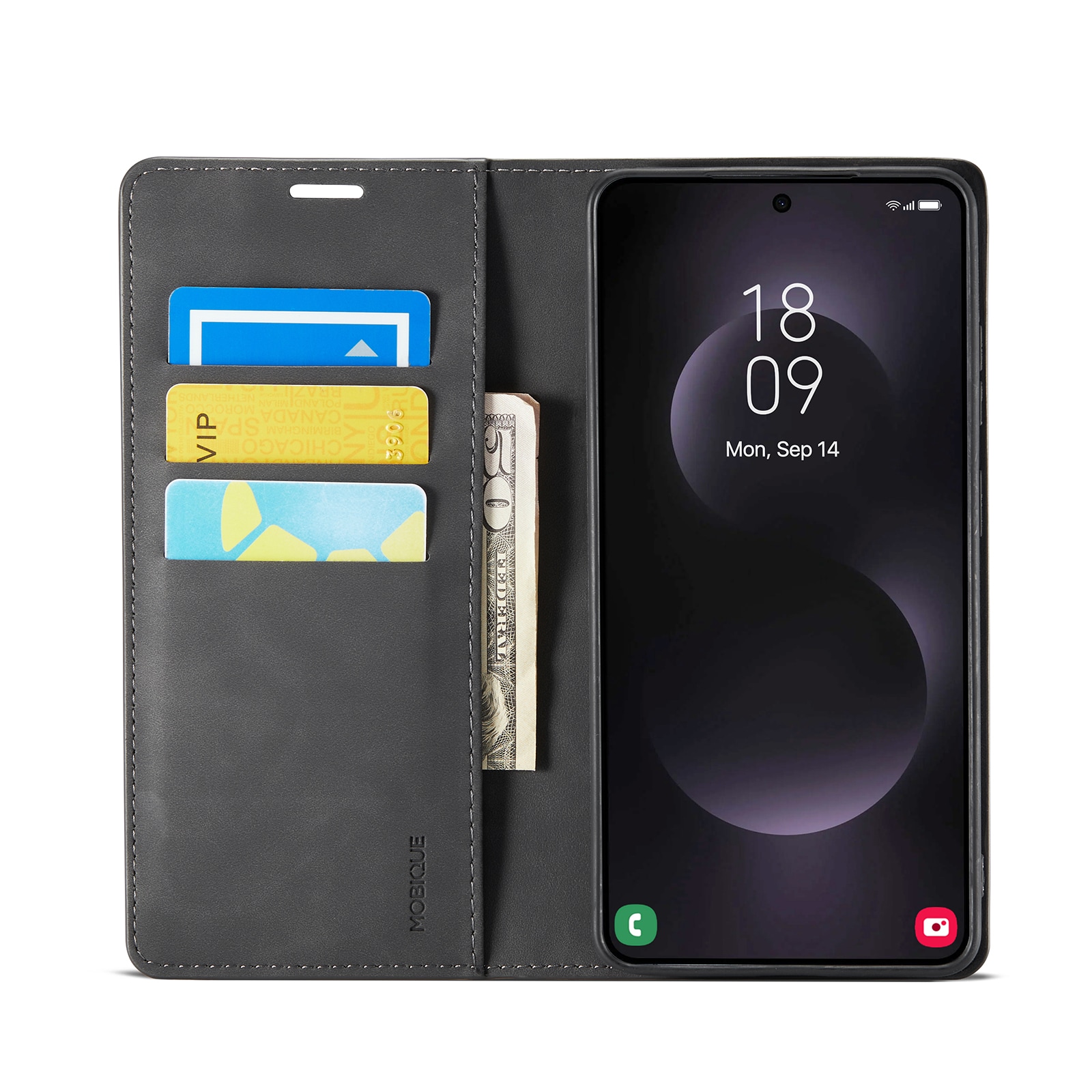 Stilrent og slankt mobilveske til Samsung Galaxy S26 Ultra. Etuiet har et silkemykt omslag laget av slitesterkt kunstskinn og et innebygd deksel i støtdempende TPU. Lokket gir god beskyttelse mot riper på skjermen, mens det indre dekselet beskytter godt ved fall og støt.