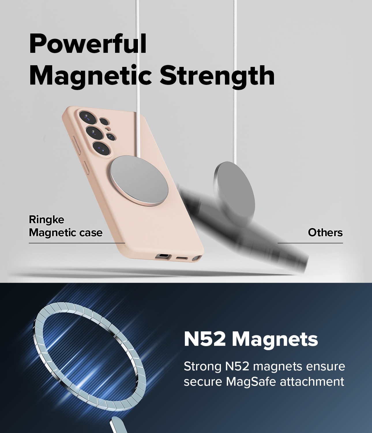 Stilrent silikondeksel med MagSafe fra Ringke til Samsung Galaxy S26 Ultra. Dekselet er støtdempende for å beskytte mot skader, og MagSafe-støtten gjør at du kan bruke MagSafe-tilbehør og lade med MagSafe - uten å ta av dekselet.