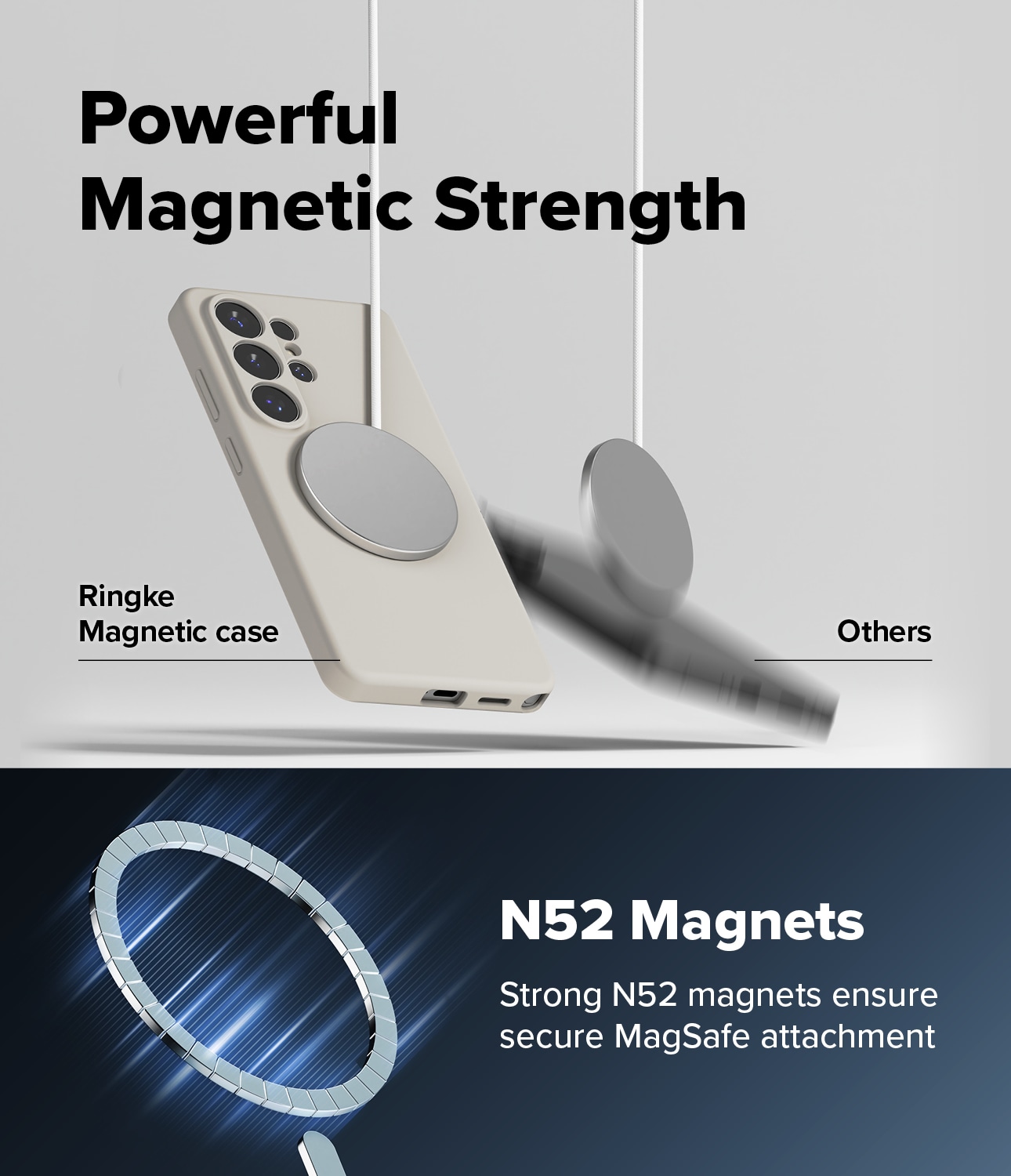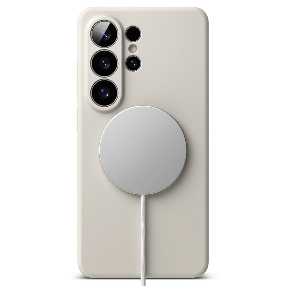 Stilrent silikondeksel med MagSafe fra Ringke til Samsung Galaxy S26 Ultra. Dekselet er støtdempende for å beskytte mot skader, og MagSafe-støtten gjør at du kan bruke MagSafe-tilbehør og lade med MagSafe - uten å ta av dekselet.