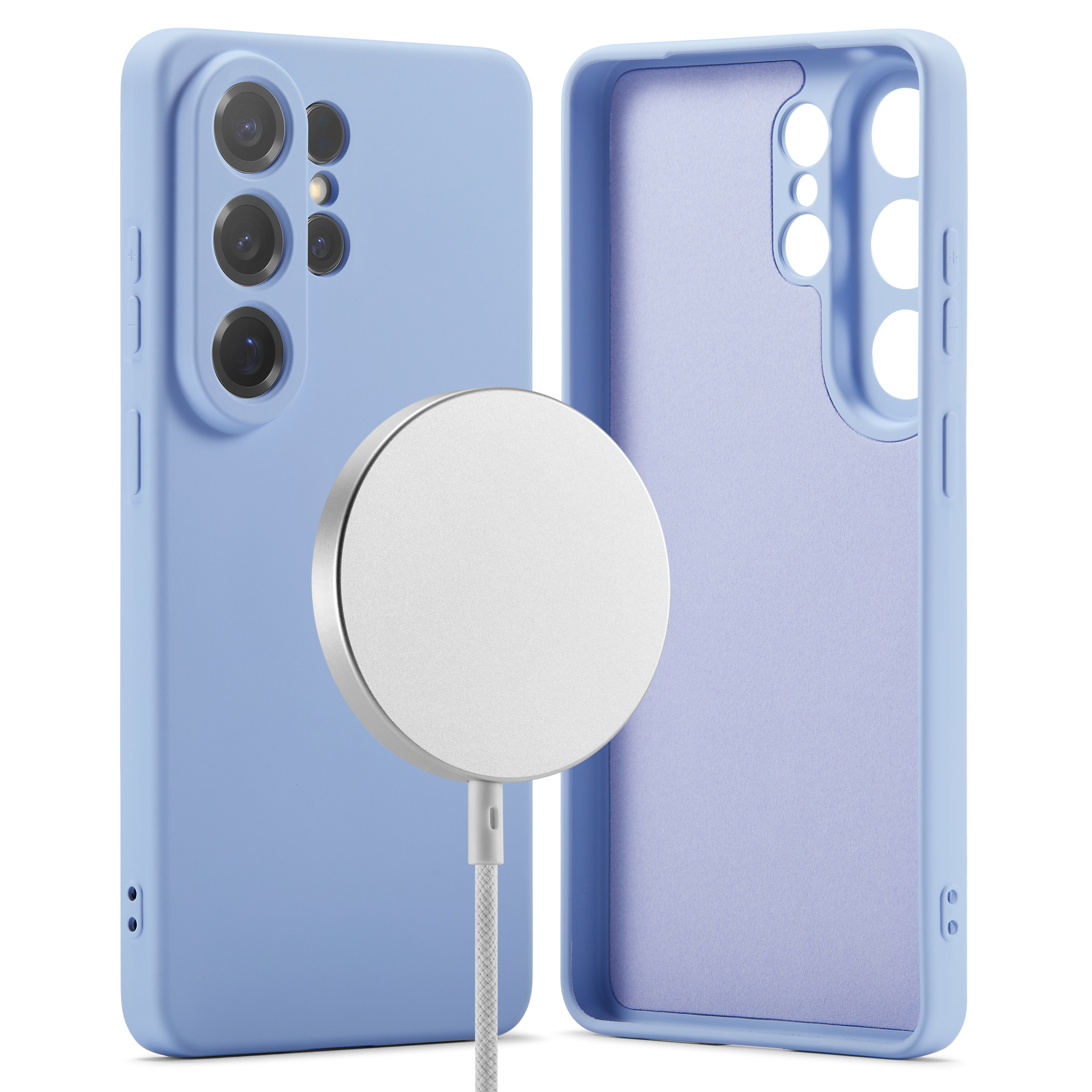 Dekselet har en magnetisk ring på innsiden og er kompatibelt med MagSafe-tilbehør som ladere og kortholdere.