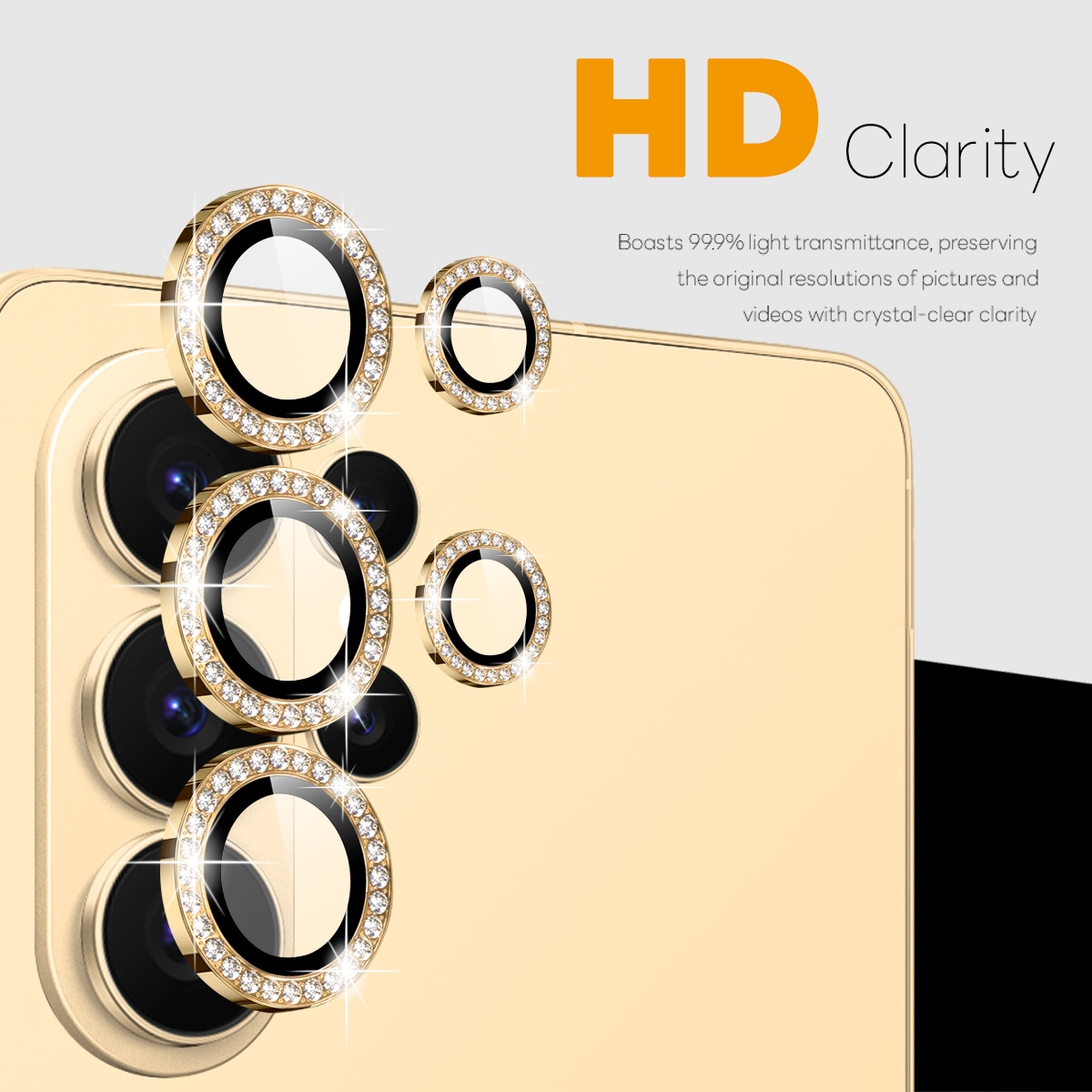 Beskytt kameralinsene på din Samsung Galaxy S26 Ultra med en linsebeskytter i herdet glass med glitrende rhinestones fra Northjo. Den gir pålitelig beskyttelse mot riper og støt, samtidig som kameraet får et elegant og eksklusivt utseende. Den heldekkende designen beskytter hele linsen uten å påvirke bildekvaliteten.