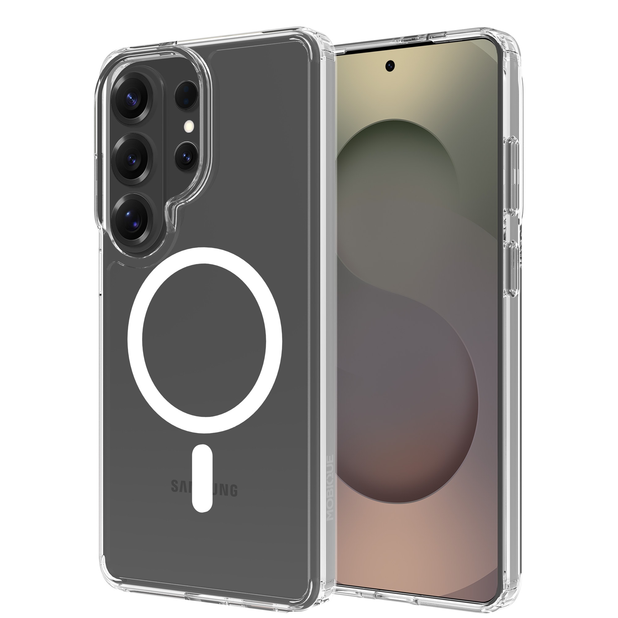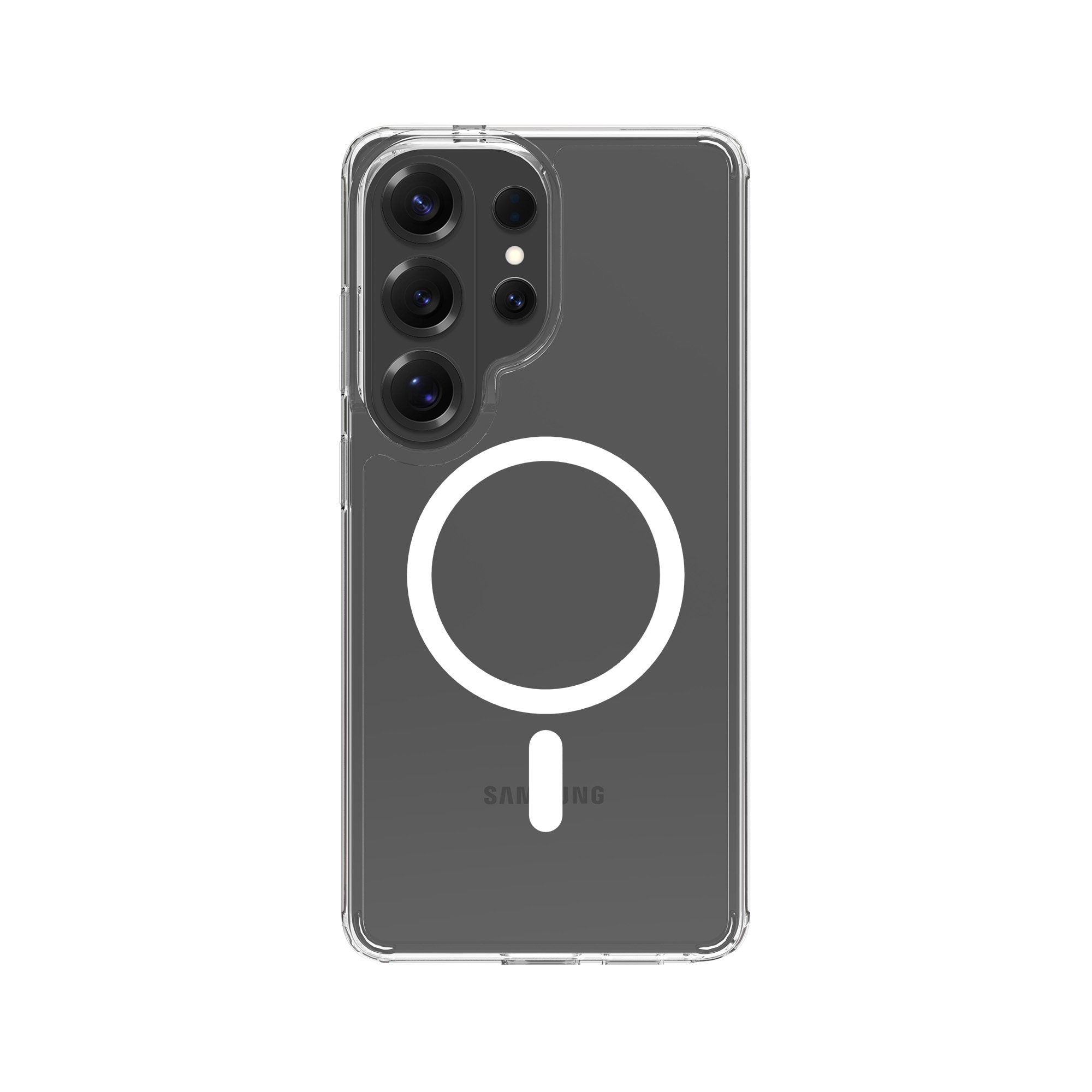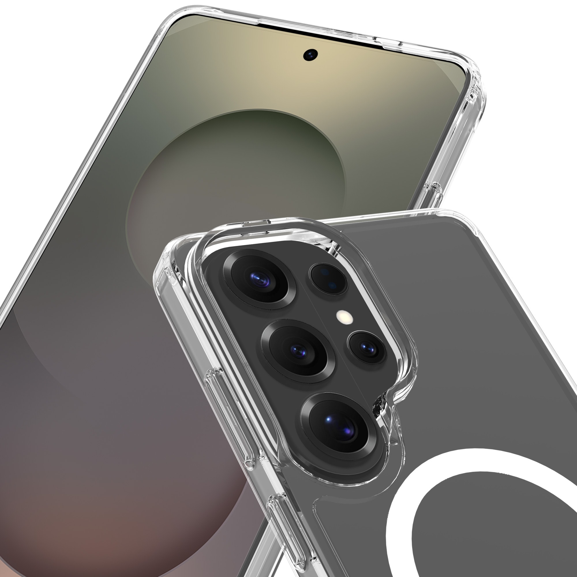 Hybriddeksel med magnetisk ring til Samsung Galaxy S26 Ultra. For best mulig beskyttelse mot støt og fall er dekselet todelt med en TPU-kjerne og et ytre skall av hardplast. Ringen på baksiden er magnetisk og kan brukes sammen med MagSafe-kompatible tilbehør som ladere og kortholdere.