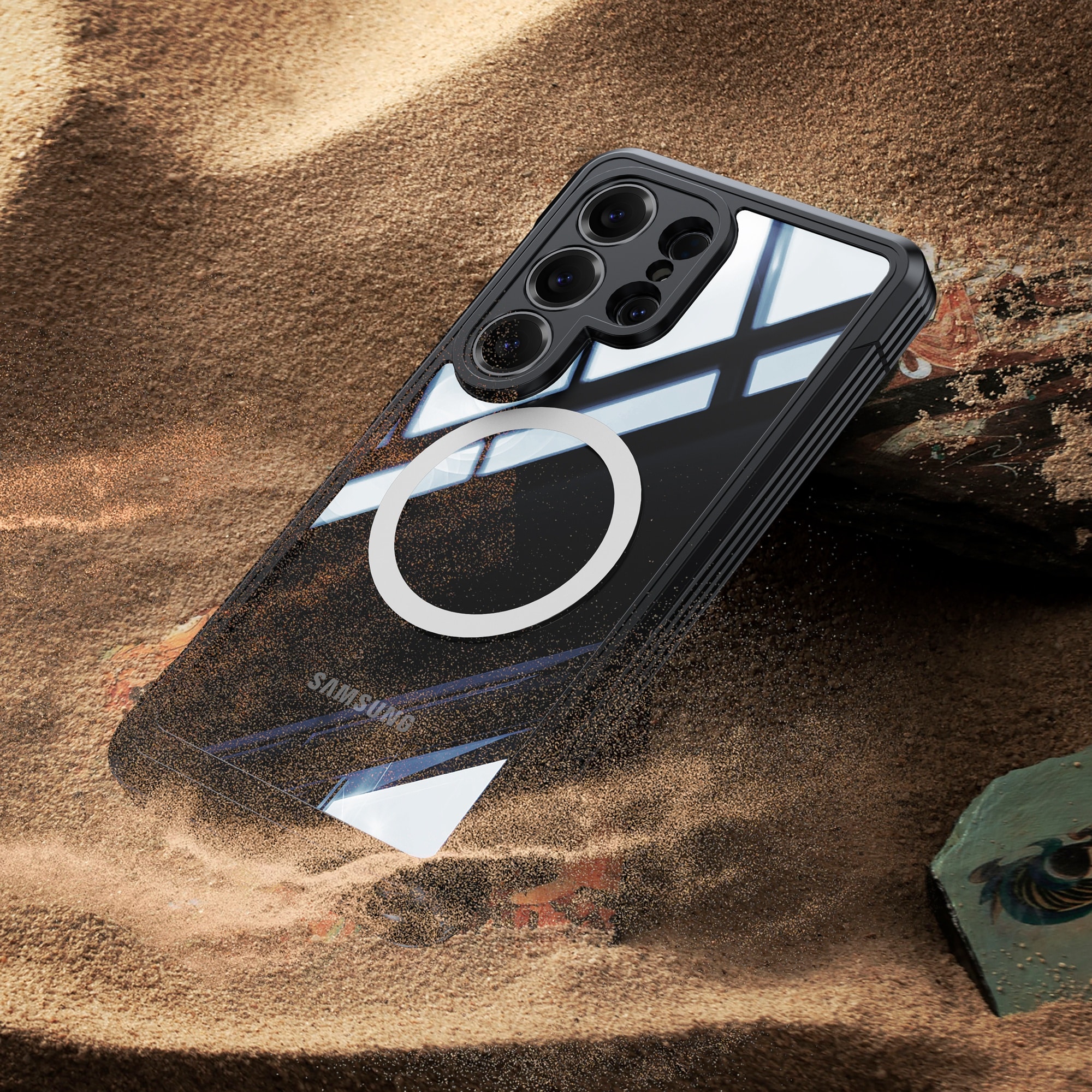 Robust deksel til Samsung Galaxy S26 Ultra med høy beskyttelsesfaktor. Dekselet har en flerlagskonstruksjon bestående av en bakside i hardplast og en ramme i støtdempende TPU med en innebygd skjermbeskytter. En kombinasjon av førsteklasses materialer som gir trygg beskyttelse til mobilen din.