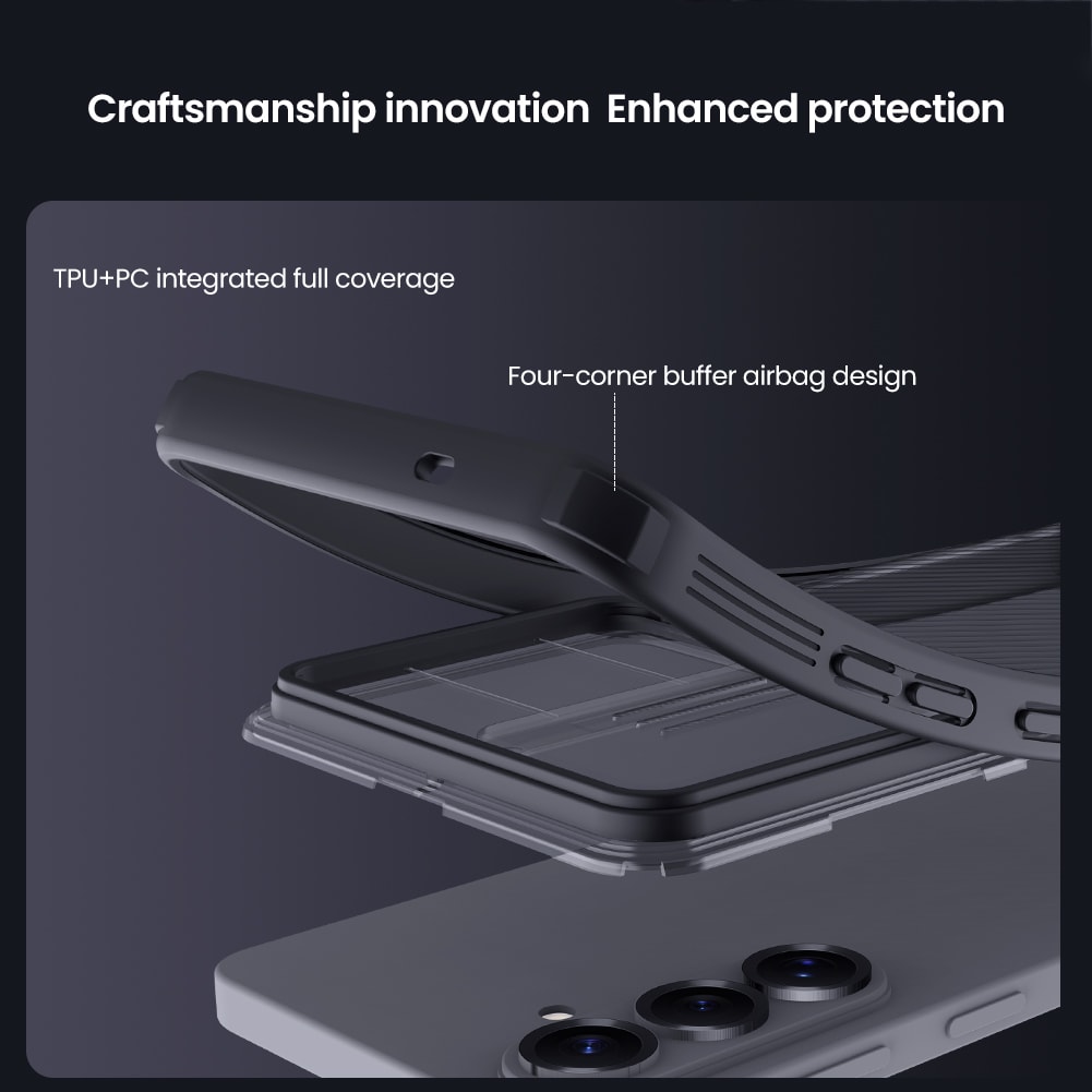 Beskyttende deksel med kameralokk og elegant design for Samsung Galaxy S26 fra Nillkin. Dette dekselet beskytter kameraet ditt mot riper og skader med et praktisk skyvelokk som enkelt trekkes foran kameraet når det ikke er i bruk.