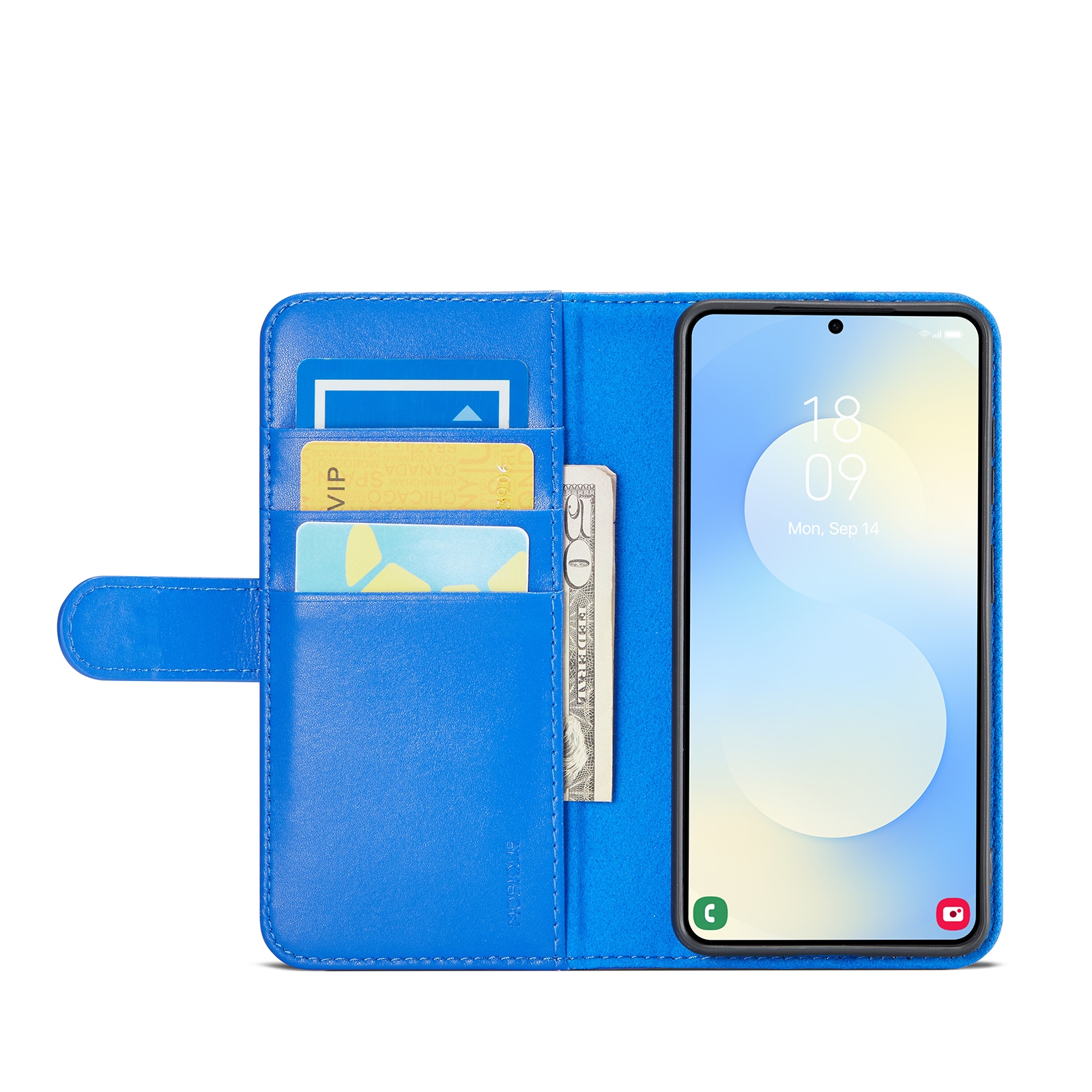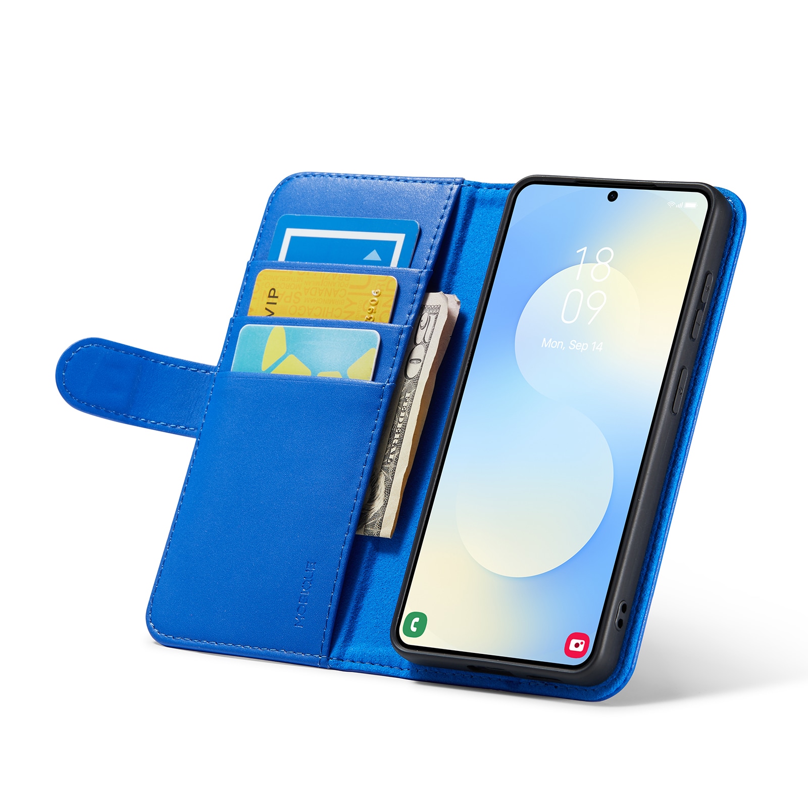 Mobilt lærveske i ekte lær til Samsung Galaxy S26. Vesken beskytter hele telefonen og har en romslig lommebok på innsiden av dekselet. Lommeboken har tre kortlommer og en seddellomme.