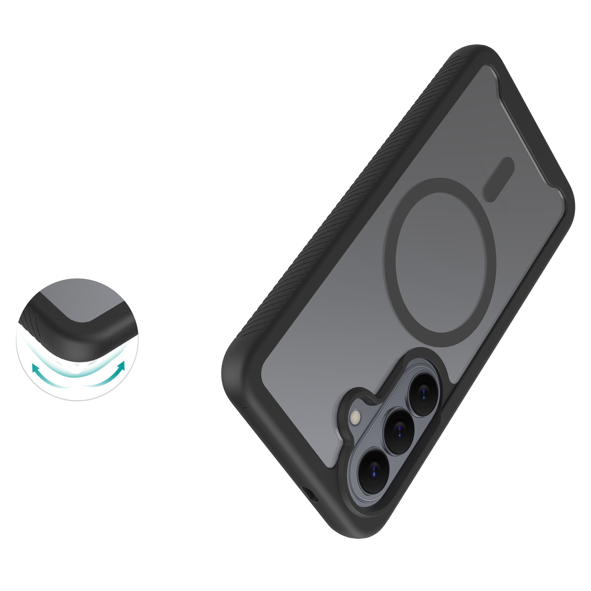 Dekselet har forhøyede kanter rundt kameraet som effektivt beskytter mot riper og sprekker. Den magnetiske ringen gjør at dekselet festes perfekt til MagSafe-ladere og -tilbehør, slik at lading og bruk alltid går smidig.