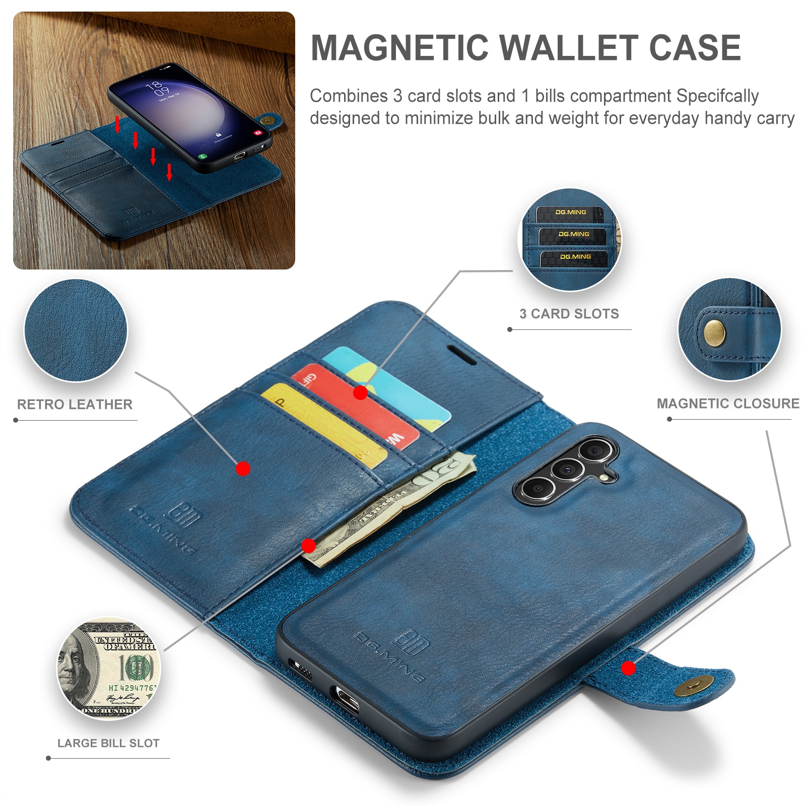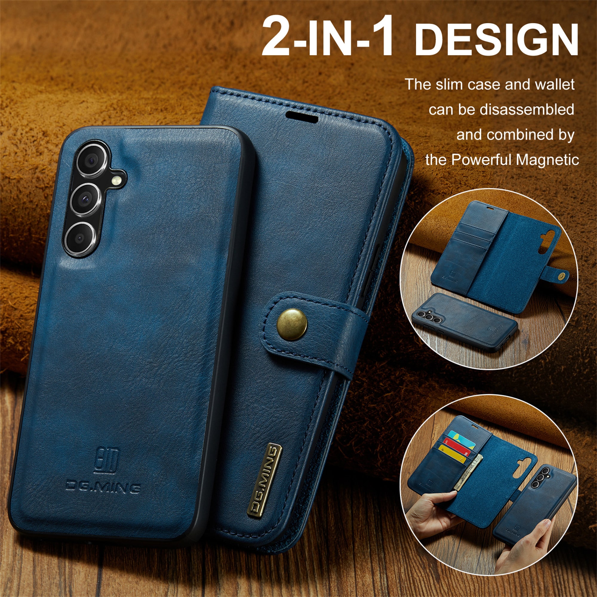 DG.MING etui med avtagbart magnetiskt deksel til Samsung Galaxy S26. Vesken har en klassisk og stilig design. Det avtagbare skallet betyr at du ikke trenger å bruke hele etui, for eksempel når du er hjemme eller på jobb.