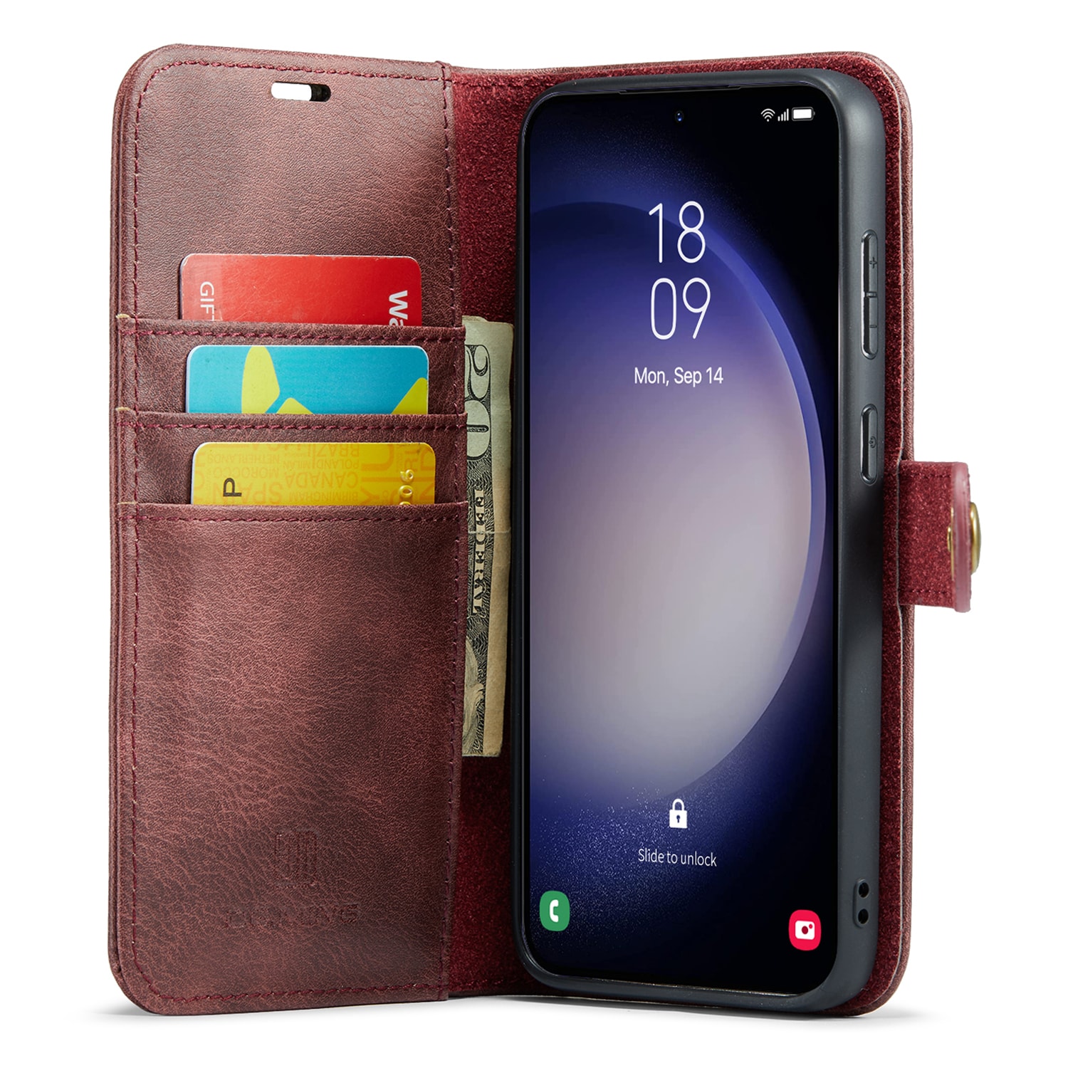 DG.MING etui med avtagbart magnetiskt deksel til Samsung Galaxy S26. Vesken har en klassisk og stilig design. Det avtagbare skallet betyr at du ikke trenger å bruke hele etui, for eksempel når du er hjemme eller på jobb.
