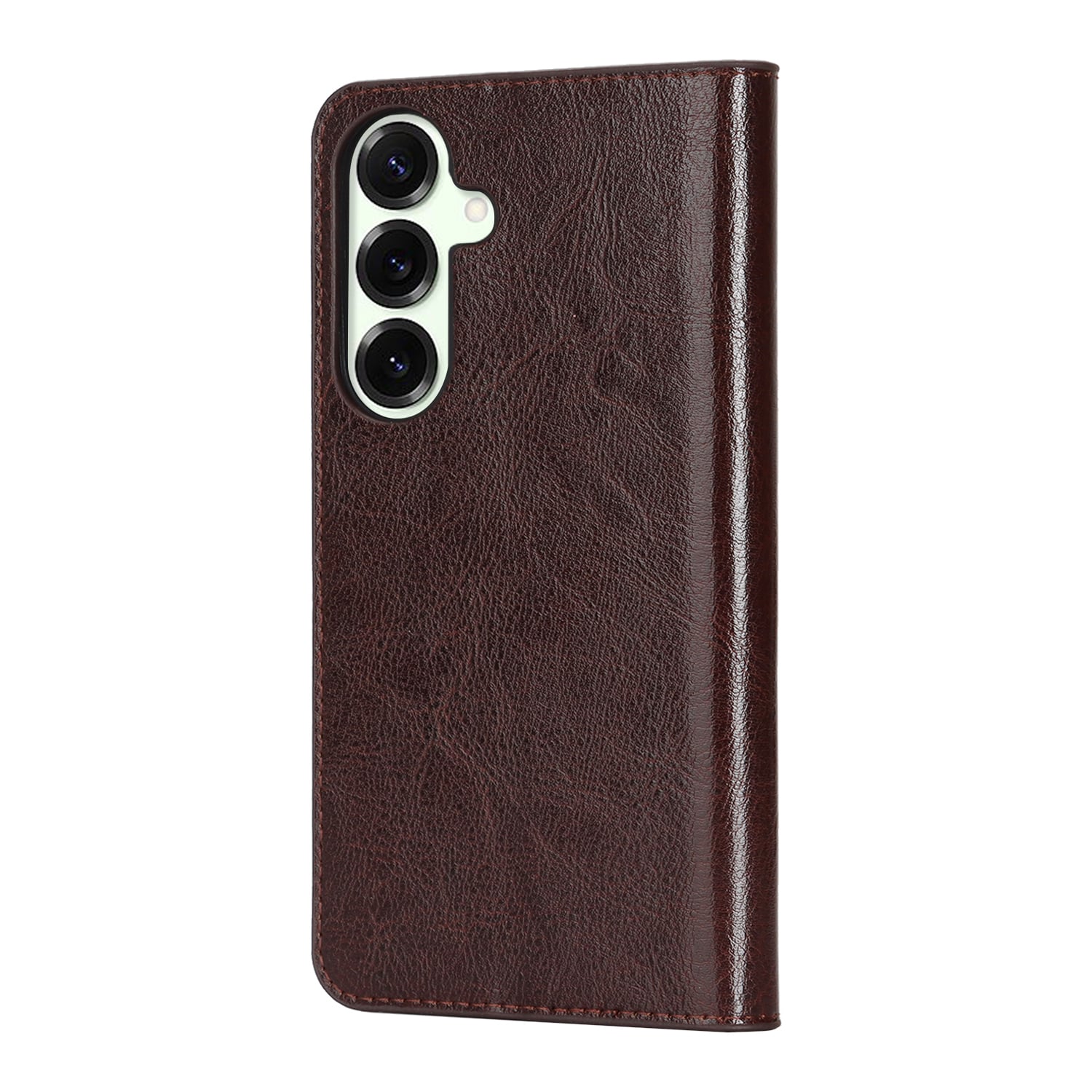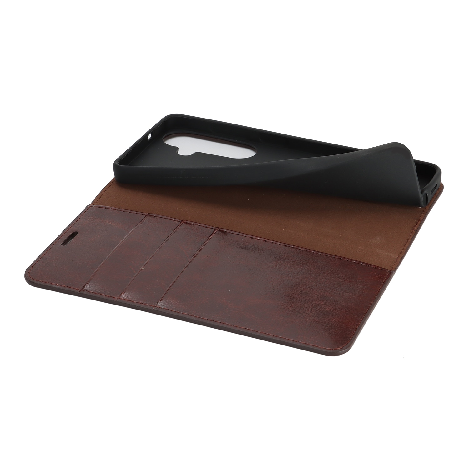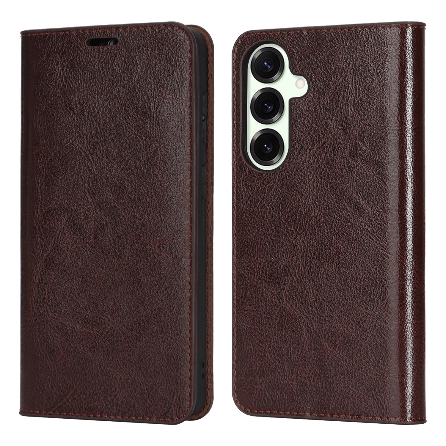 Beskytt din Samsung Galaxy S26 med et etui i ekte skinn. Til tross for den slanke og smarte designen, har etuiet 3 kortlommer og 1 seddellomme på innsiden av lokket. Telefonen festes trygt i et fleksibelt deksel som holder den sikkert på plass.