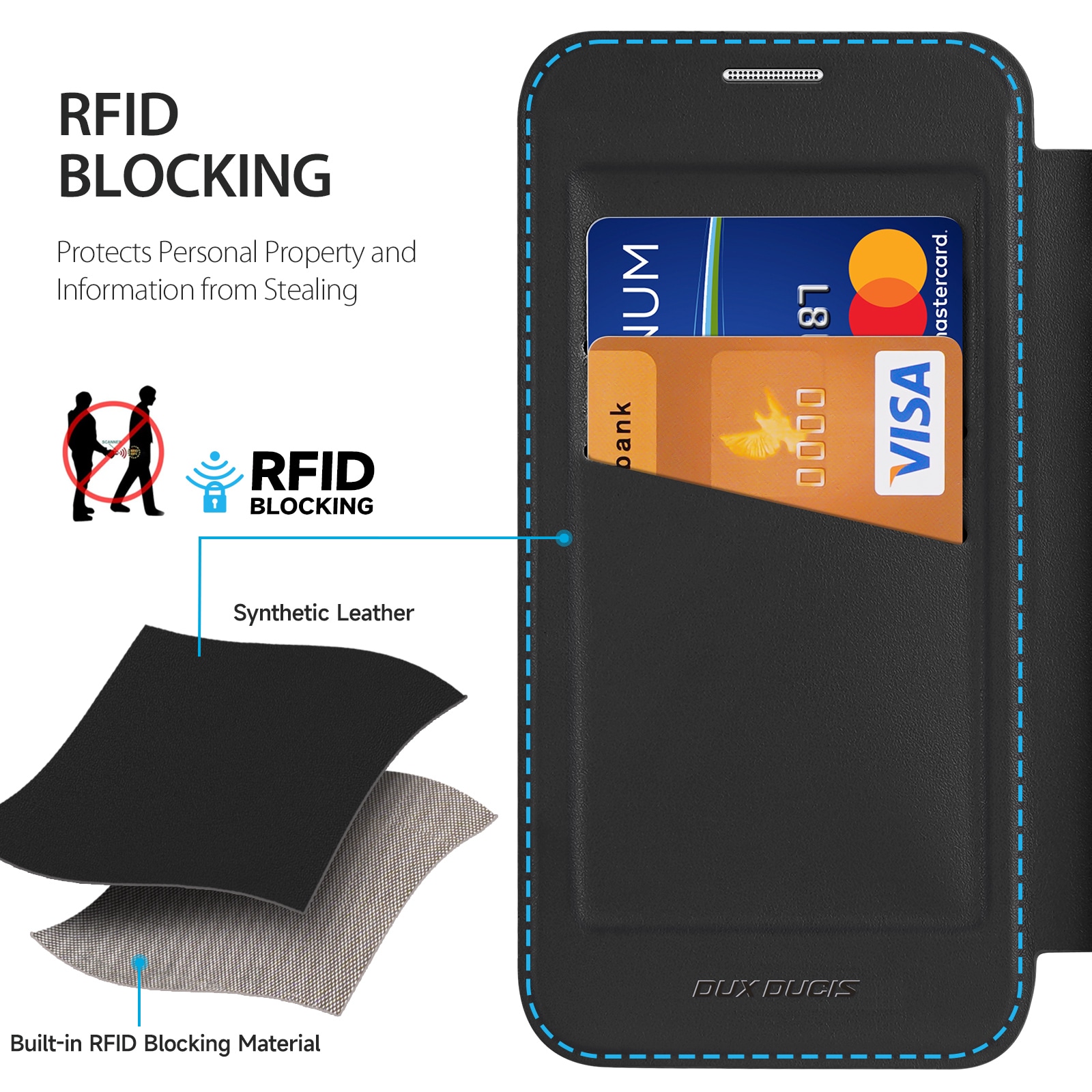 Dekselet, som beskytter skjermen mot riper og skader, har en praktisk kortlomme. Kortlommen på dekselet har innebygd RFID-blokkering, slik at du kan føle deg trygg med at kortene dine er trygt oppbevart.