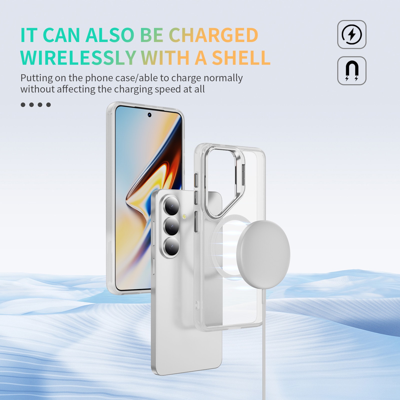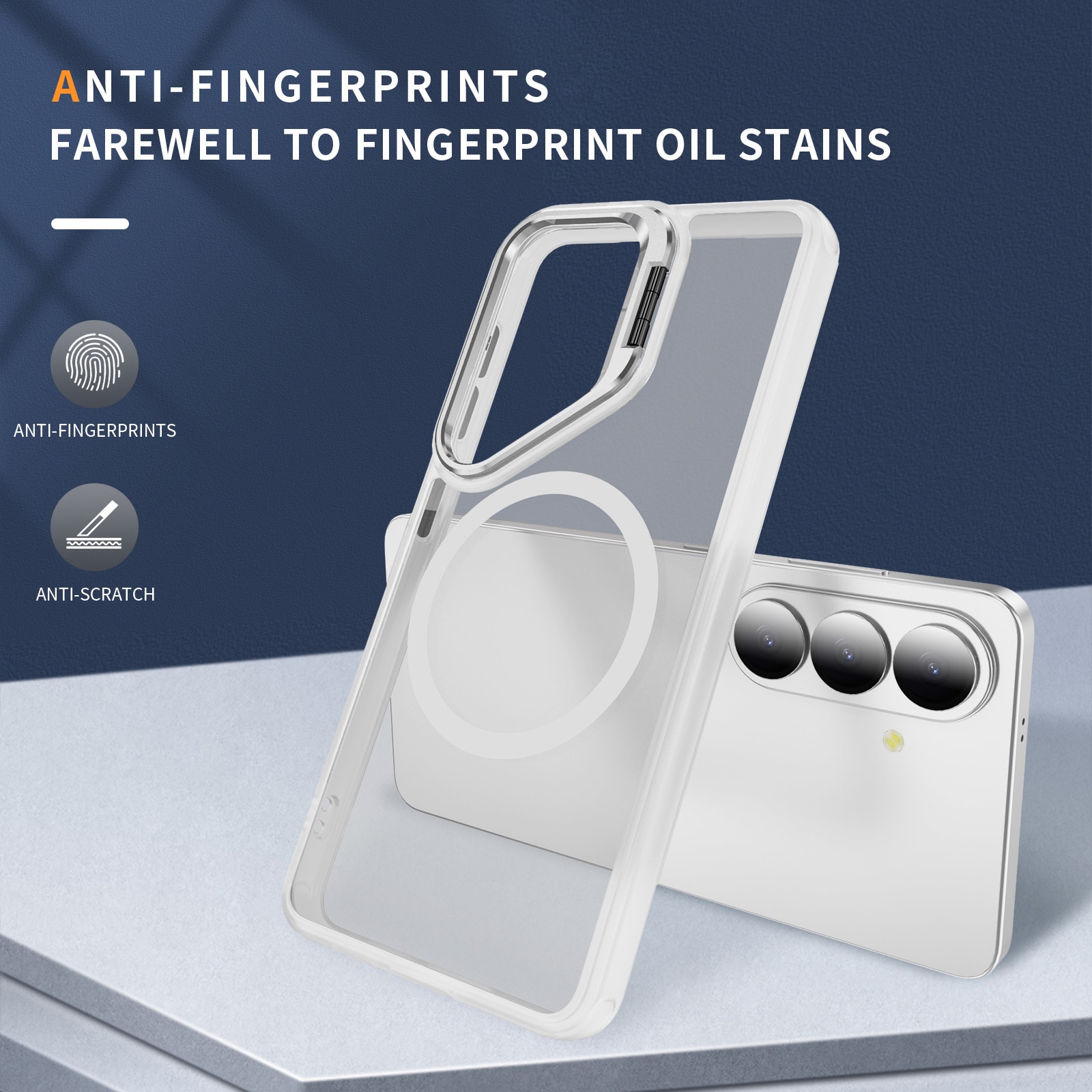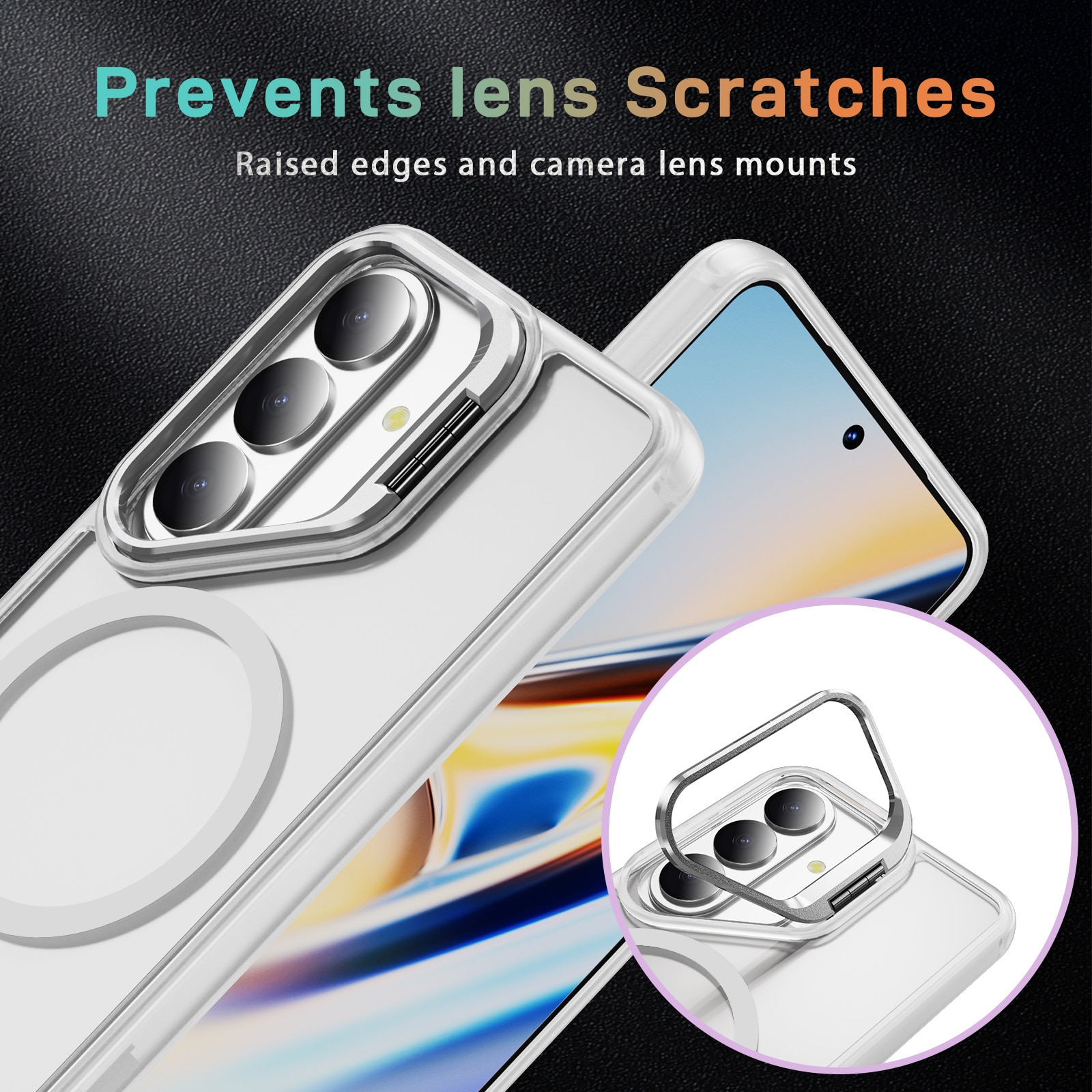 Stilig og praktisk hybriddeksel med utfellbar støtte og MagSafe til Samsung Galaxy S26. For best mulig beskyttelse mot støt og fall er dekselet todelt med en TPU-kjerne og et skall i hardplast. Dekselet har en metallramme rundt kameraet som hindrer skader på kameraobjektivene og fungerer også som et praktisk stativ for visning av filmer, videoklipp eller spill med komfortabel visningsvinkel.
