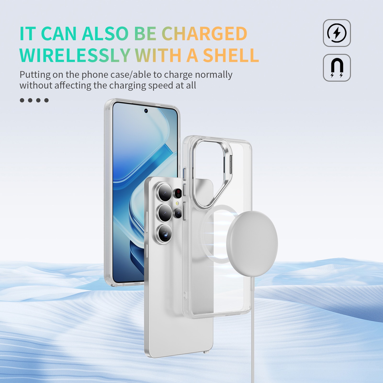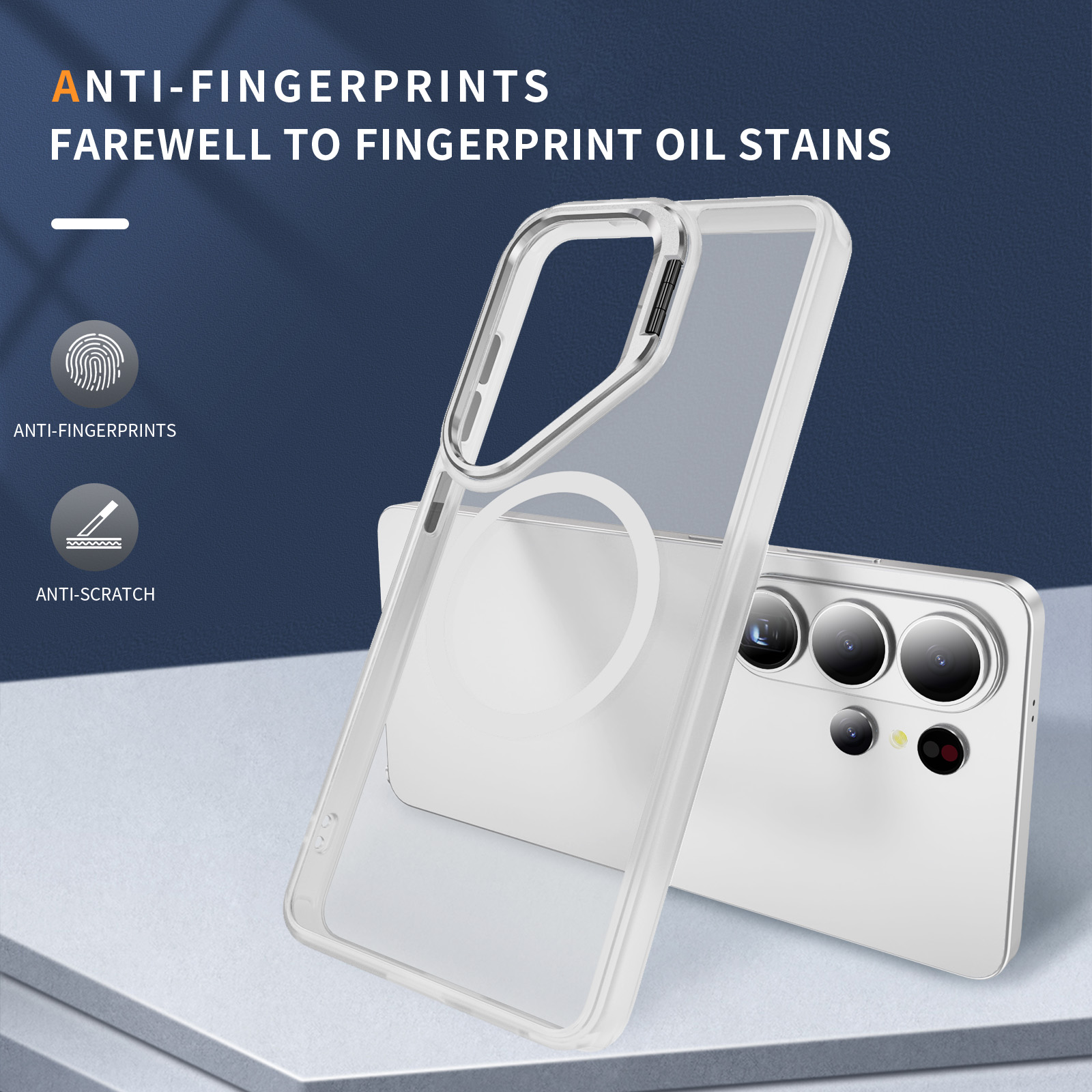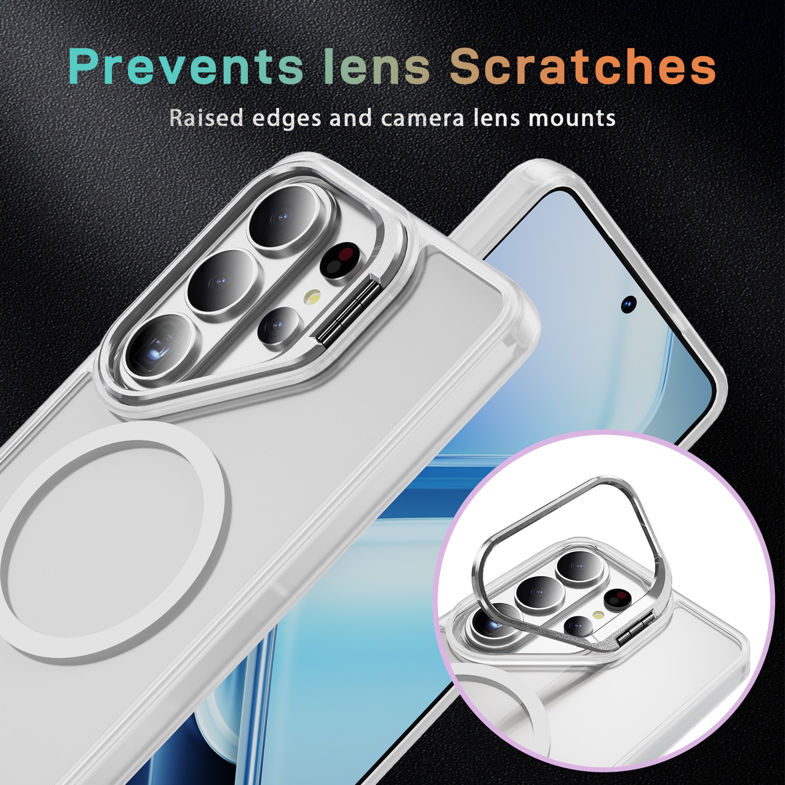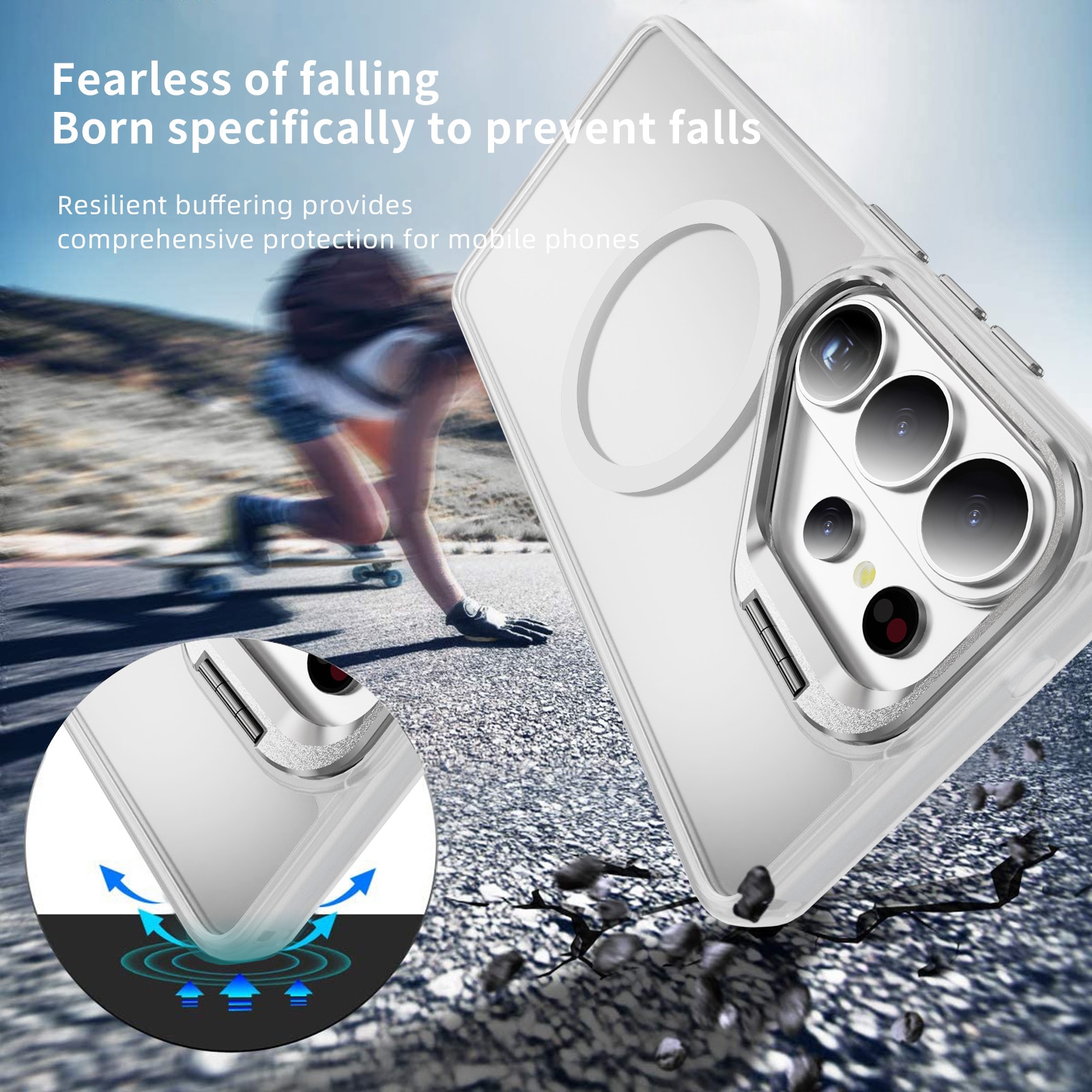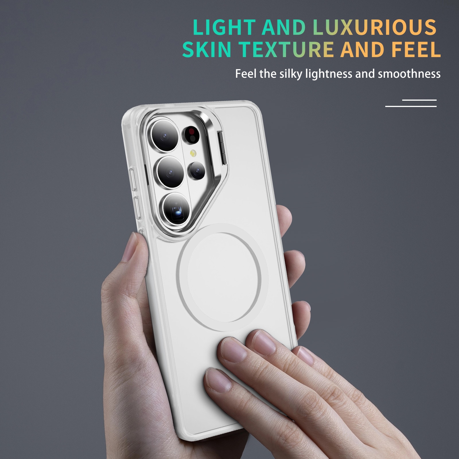 Stilig og praktisk hybriddeksel med utfellbar støtte og MagSafe til Samsung Galaxy S26 Ultra. For best mulig beskyttelse mot støt og fall er dekselet todelt med en TPU-kjerne og et skall i hardplast. Dekselet har en metallramme rundt kameraet som hindrer skader på kameraobjektivene og fungerer også som et praktisk stativ for visning av filmer, videoklipp eller spill med komfortabel visningsvinkel.