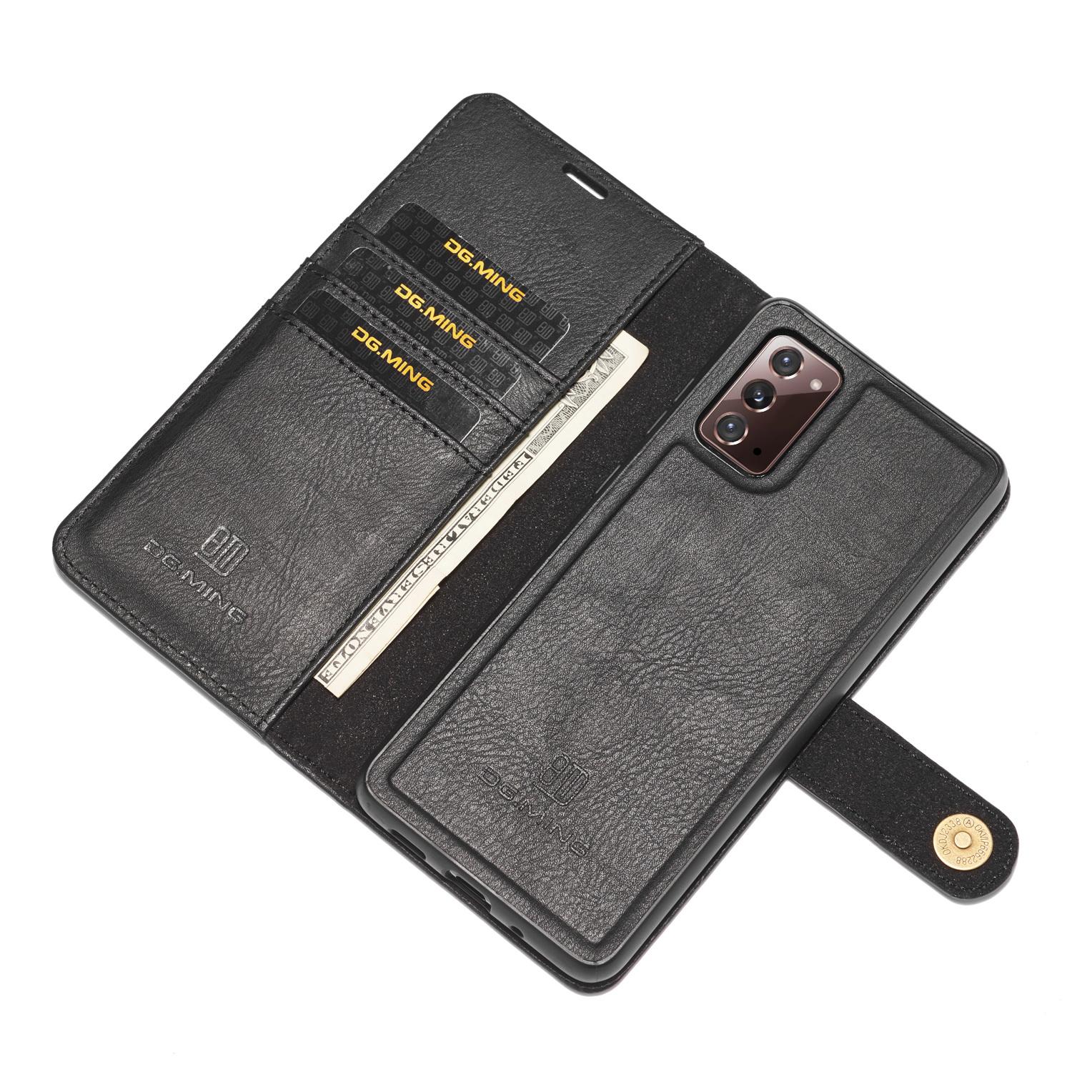DG.MING etui med avtagbart magnetiskt deksel til Samsung Galaxy Note 20. Vesken har en klassisk og stilig design. Det avtagbare skallet betyr at du ikke trenger å bruke hele etui, for eksempel når du er hjemme eller på jobb.