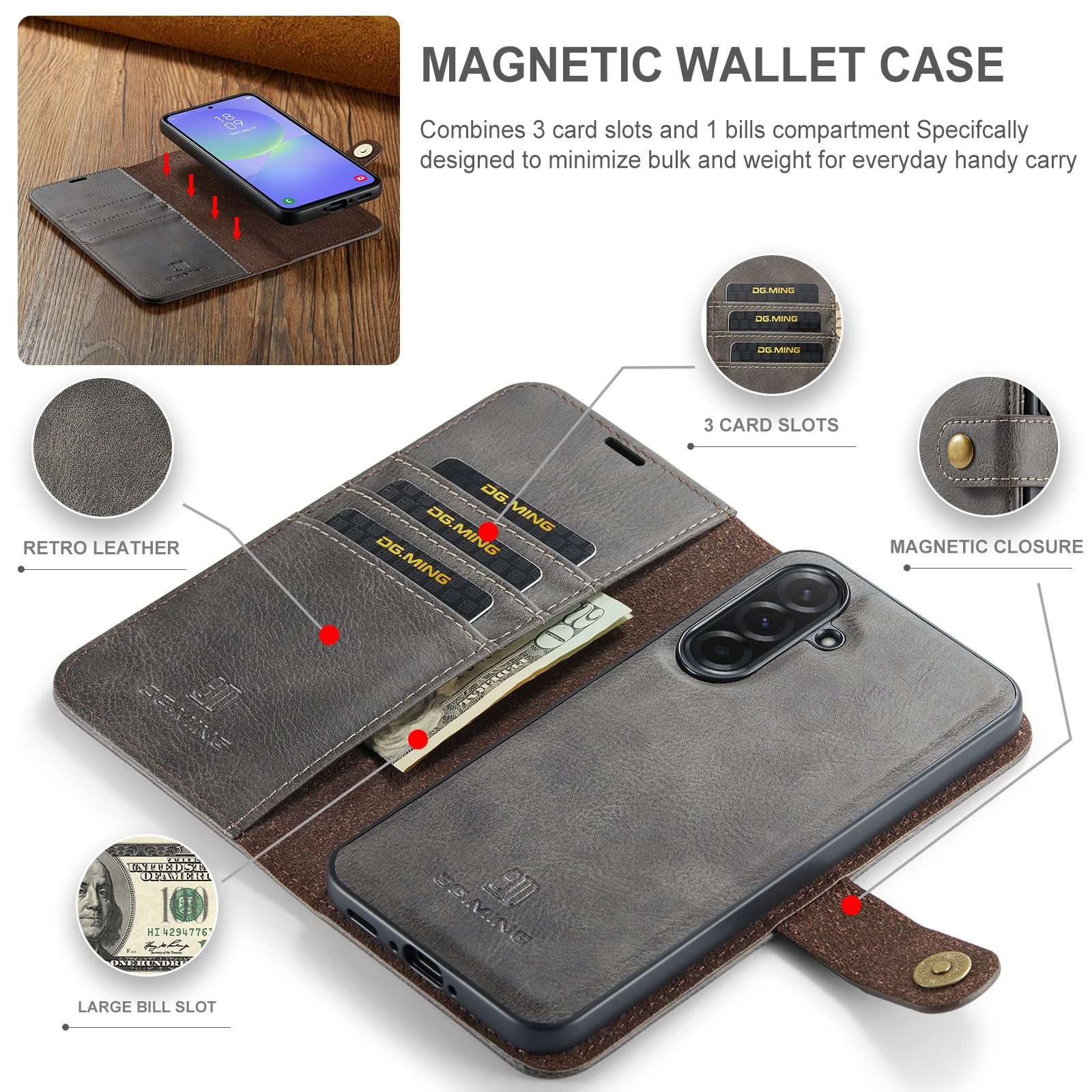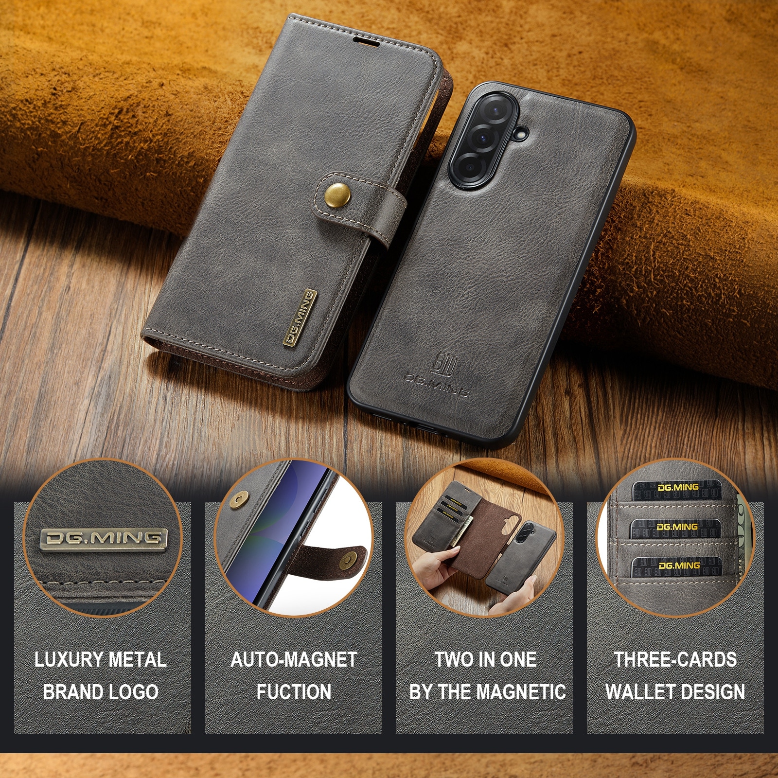 DG.MING etui med avtagbart magnetiskt deksel til Samsung Galaxy A37. Vesken har en klassisk og stilig design. Det avtagbare skallet betyr at du ikke trenger å bruke hele etui, for eksempel når du er hjemme eller på jobb.