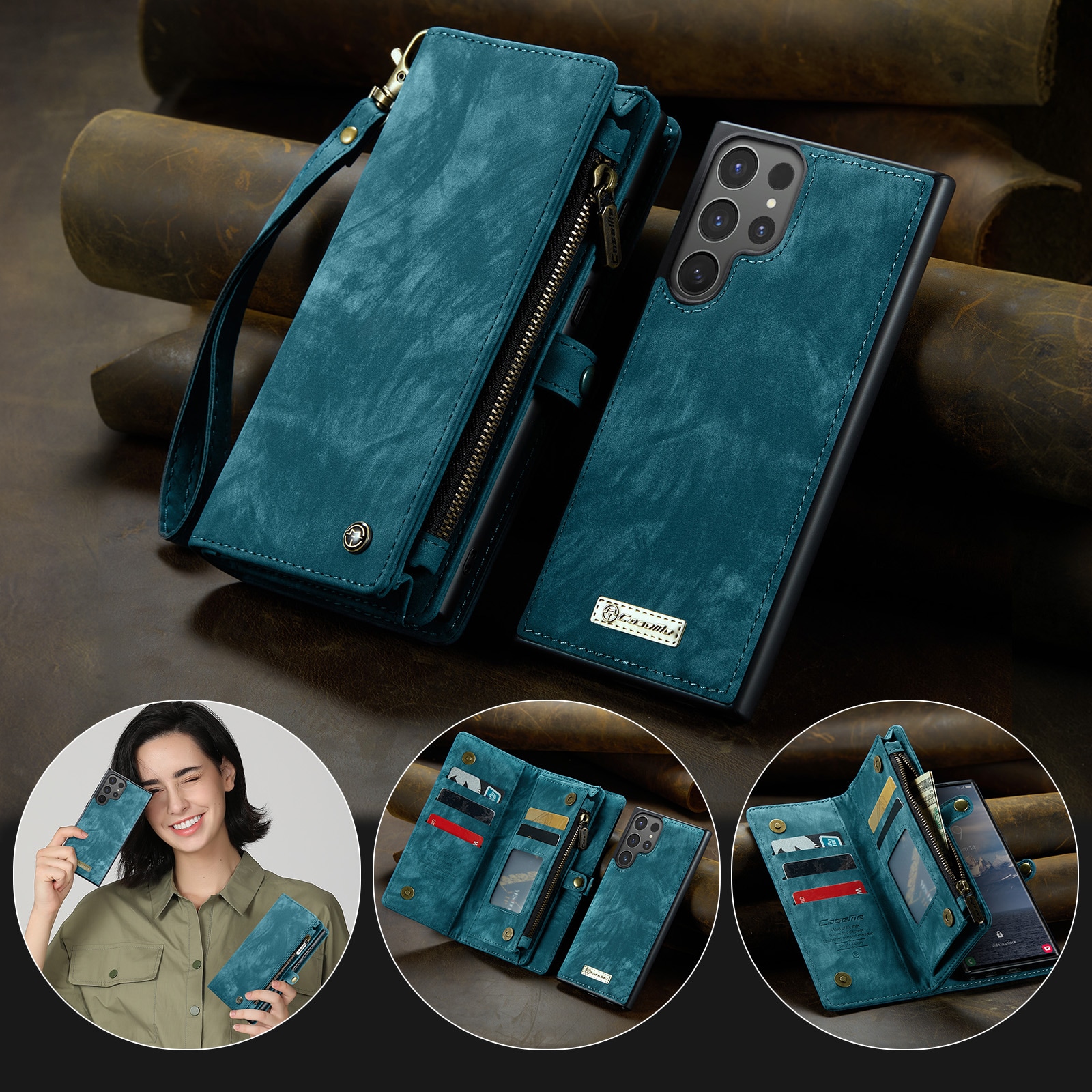 CaseMe mobiletui med magnetisk deksel og ekstra romslig lommebok med mange kortlommer til Samsung Galaxy S26 Ultra. Lommeboken har flere kortlommer, en seddellomme og en myntlomme med glidelås.