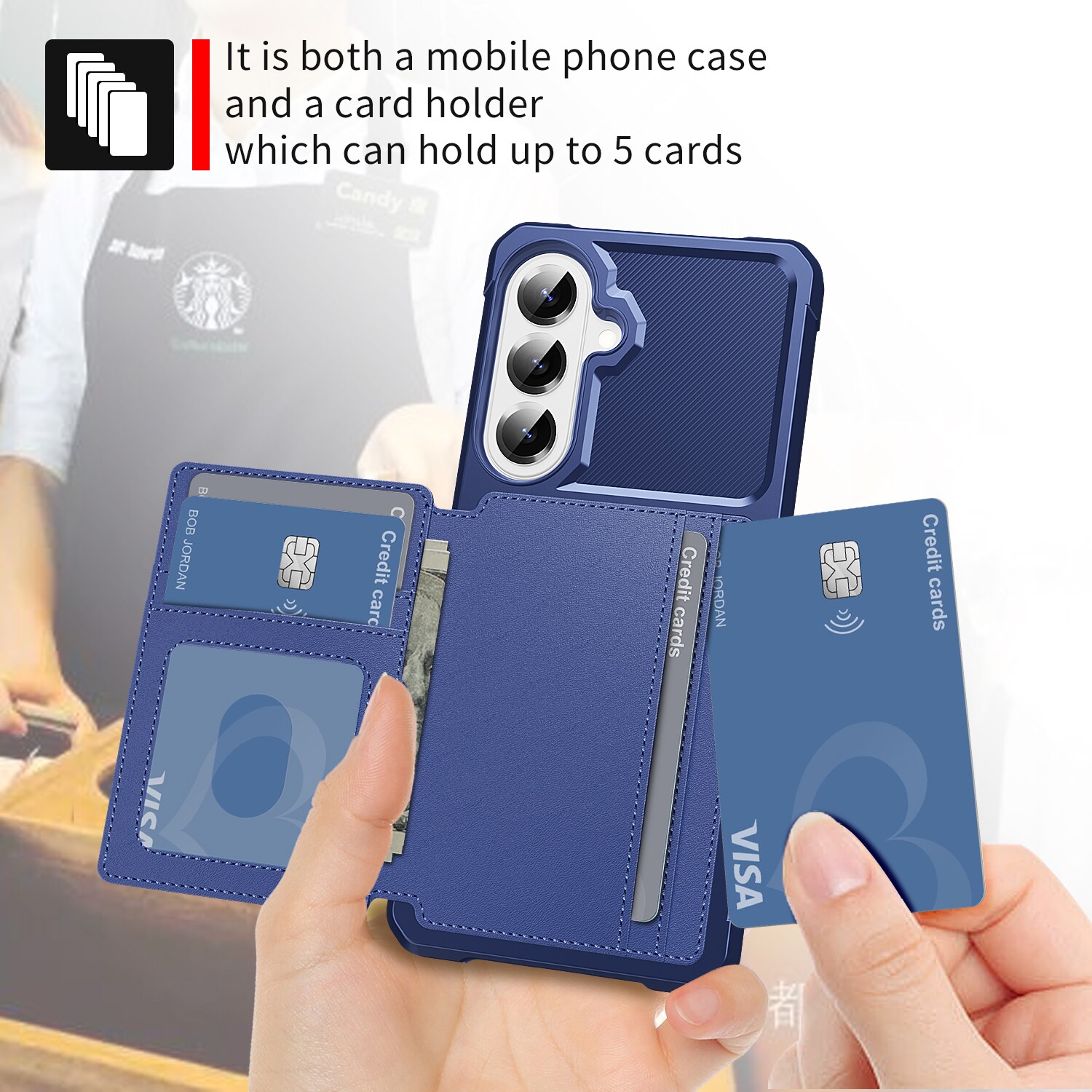 Støtdempende mobildeksel med skjult kortholder på baksiden. Dekselet har et stilig design og forsterkede hjørner for den beste beskyttelsen.