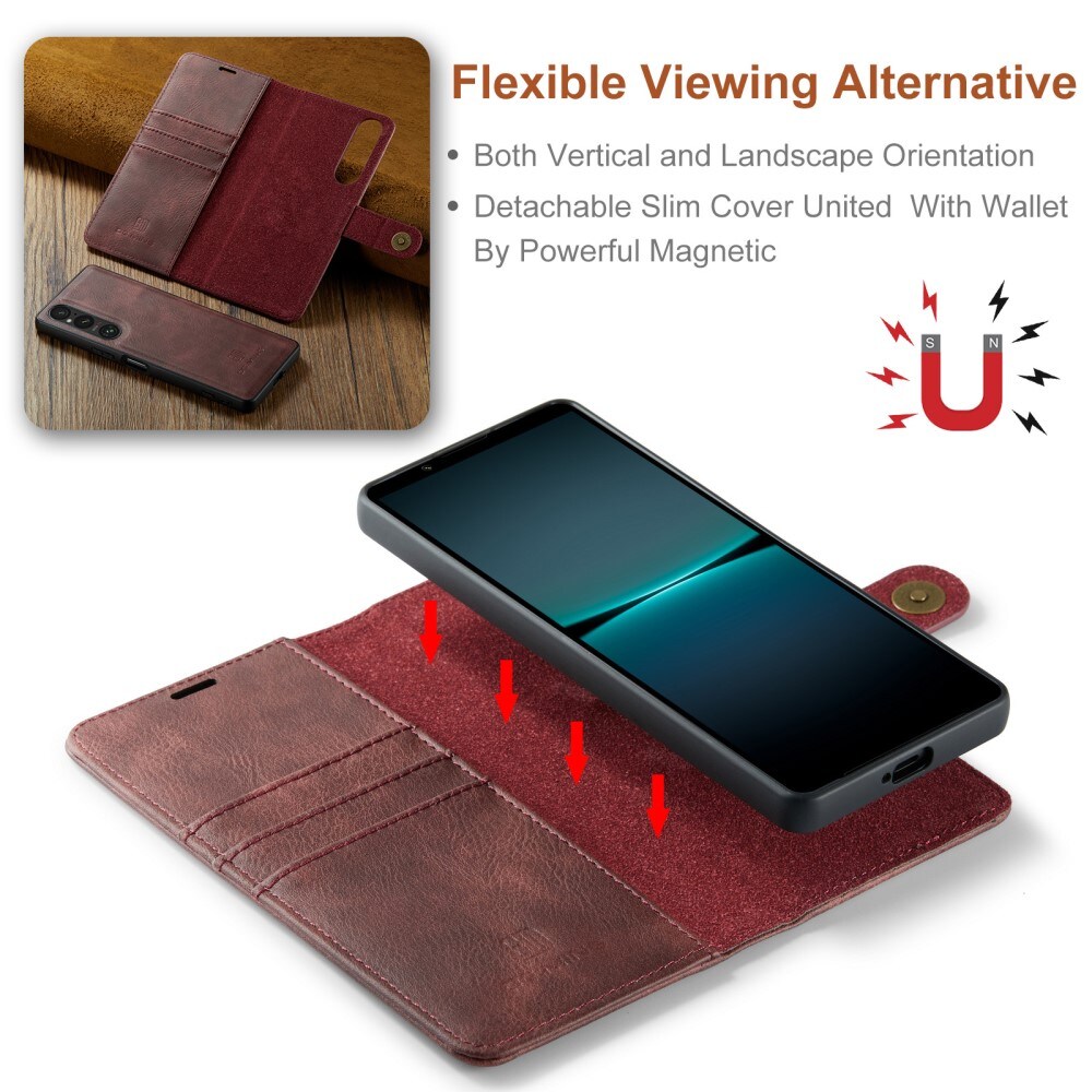 DG.MING etui med avtagbart magnetiskt deksel til Sony Xperia 1 VI. Vesken har en klassisk og stilig design. Det avtagbare skallet betyr at du ikke trenger å bruke hele etui, for eksempel når du er hjemme eller på jobb.