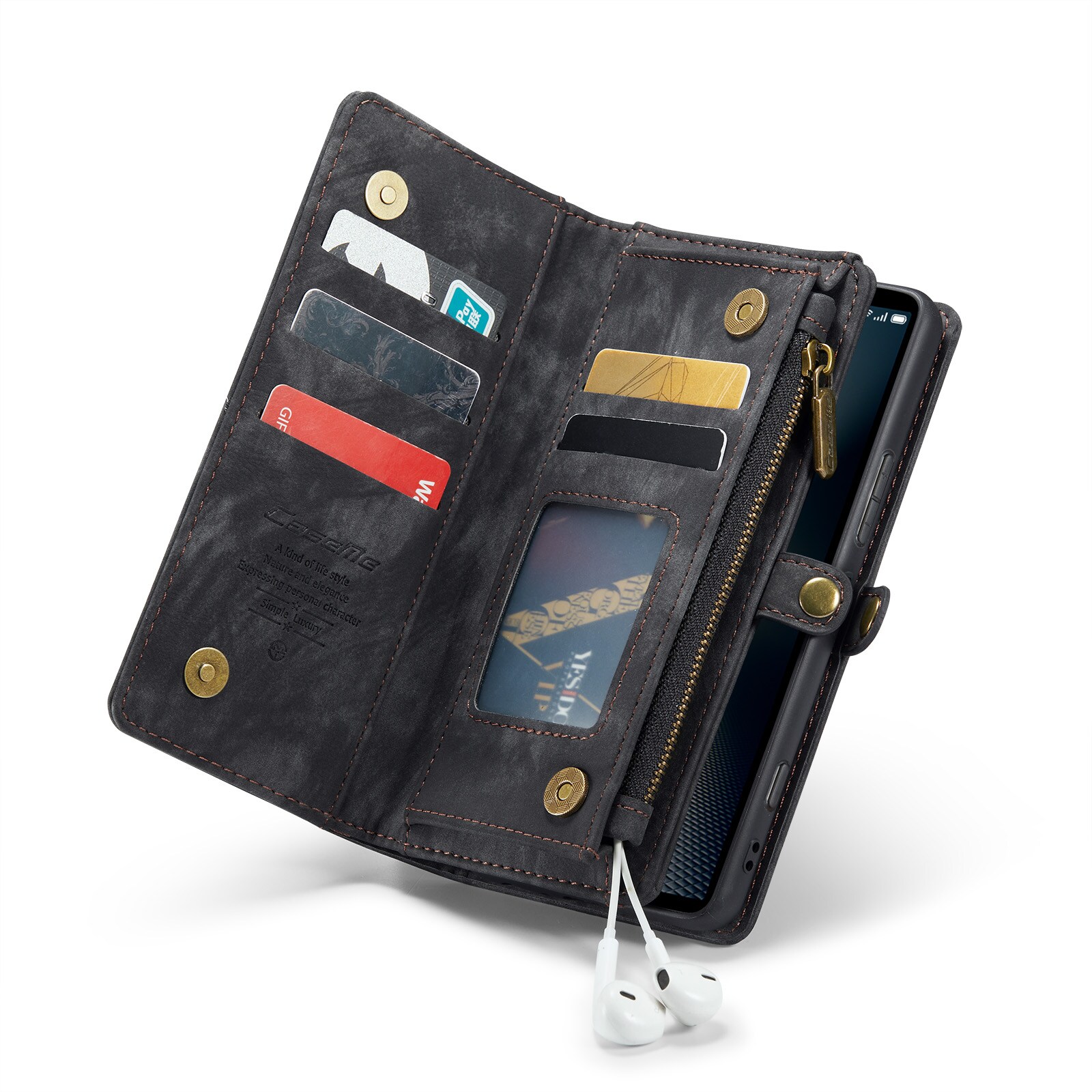 CaseMe mobiletui med magnetisk deksel og ekstra romslig lommebok med mange kortlommer til Sony Xperia 10 VI. Lommeboken har flere kortlommer, en seddellomme og en myntlomme med glidelås.