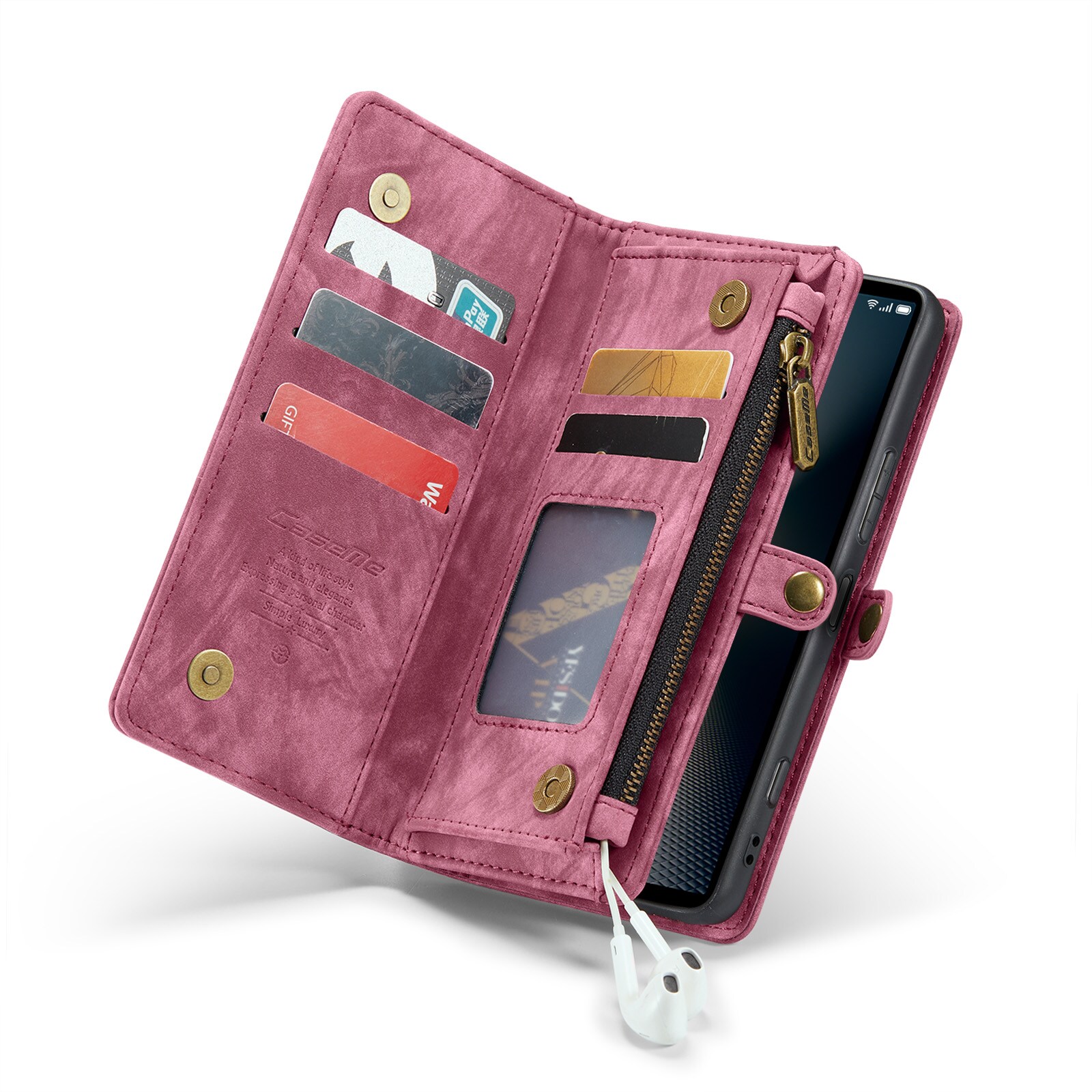 CaseMe mobiletui med magnetisk deksel og ekstra romslig lommebok med mange kortlommer til Sony Xperia 10 VI. Lommeboken har flere kortlommer, en seddellomme og en myntlomme med glidelås.