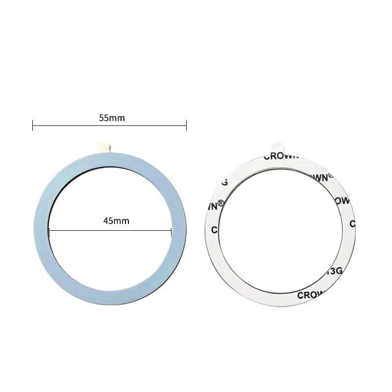 Magnetisk klistermærke-ring for MagSafe-kompatibilitet. Den er designet for å være kompatibel med MagSafe-lading og MagSafe-tilbehør. Ringen har en selvklebende bakside som gjør det enkelt å feste den på enheten din eller på et vanlig mobildeksel. Den tynne og lette designen smelter sømløst sammen med telefonens utseende uten å gjøre den klumpete eller tungvint.