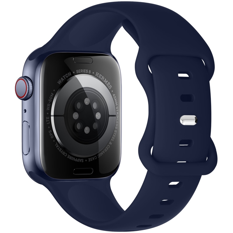 Reim i slitesterk og vannbestandig silikon for Apple Watch Series 4-6 40mm. Når reimet er laget av silikon, er det motstandsdyktig mot alle typer vann, noe som gjør den til et perfekt reim for de som trener og er aktive.