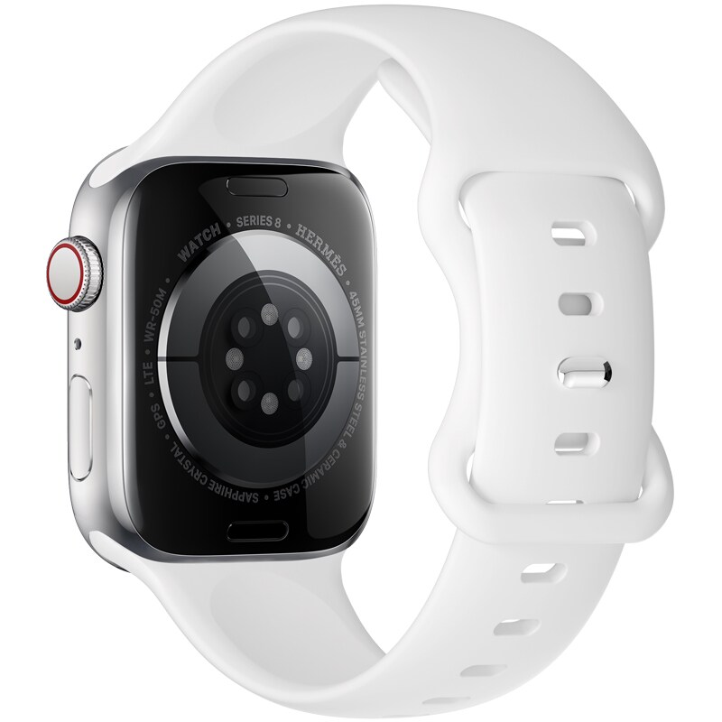 Reim i slitesterk og vannbestandig silikon for Apple Watch Series 4-6 40mm. Når reimet er laget av silikon, er det motstandsdyktig mot alle typer vann, noe som gjør den til et perfekt reim for de som trener og er aktive.