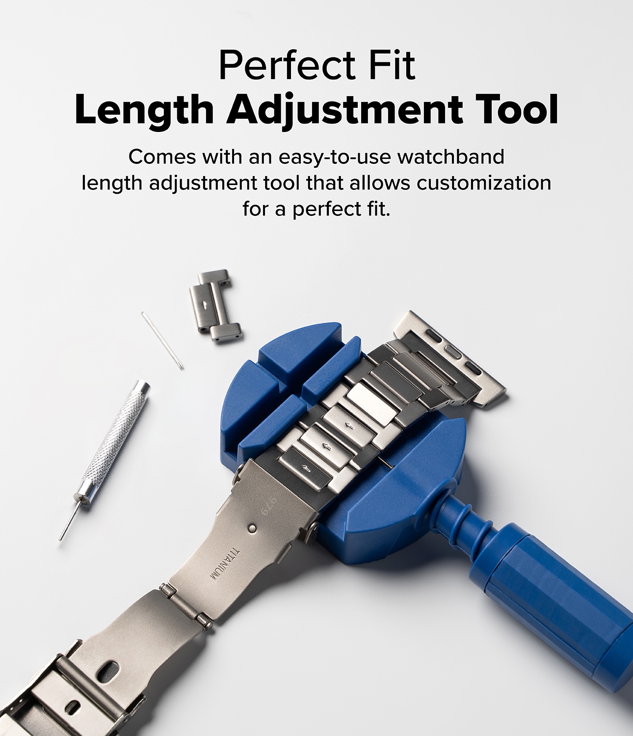 Eksklusivt armbånd i titan fra Ringke til Apple Watch Series 1-3 42mm. Titanmaterialet gjør armbåndet både ekstremt slitesterkt og lettere enn et tradisjonelt armbånd i rustfritt stål. Armbåndet er designet for å gi smartklokken din en robust og elegant følelse.
