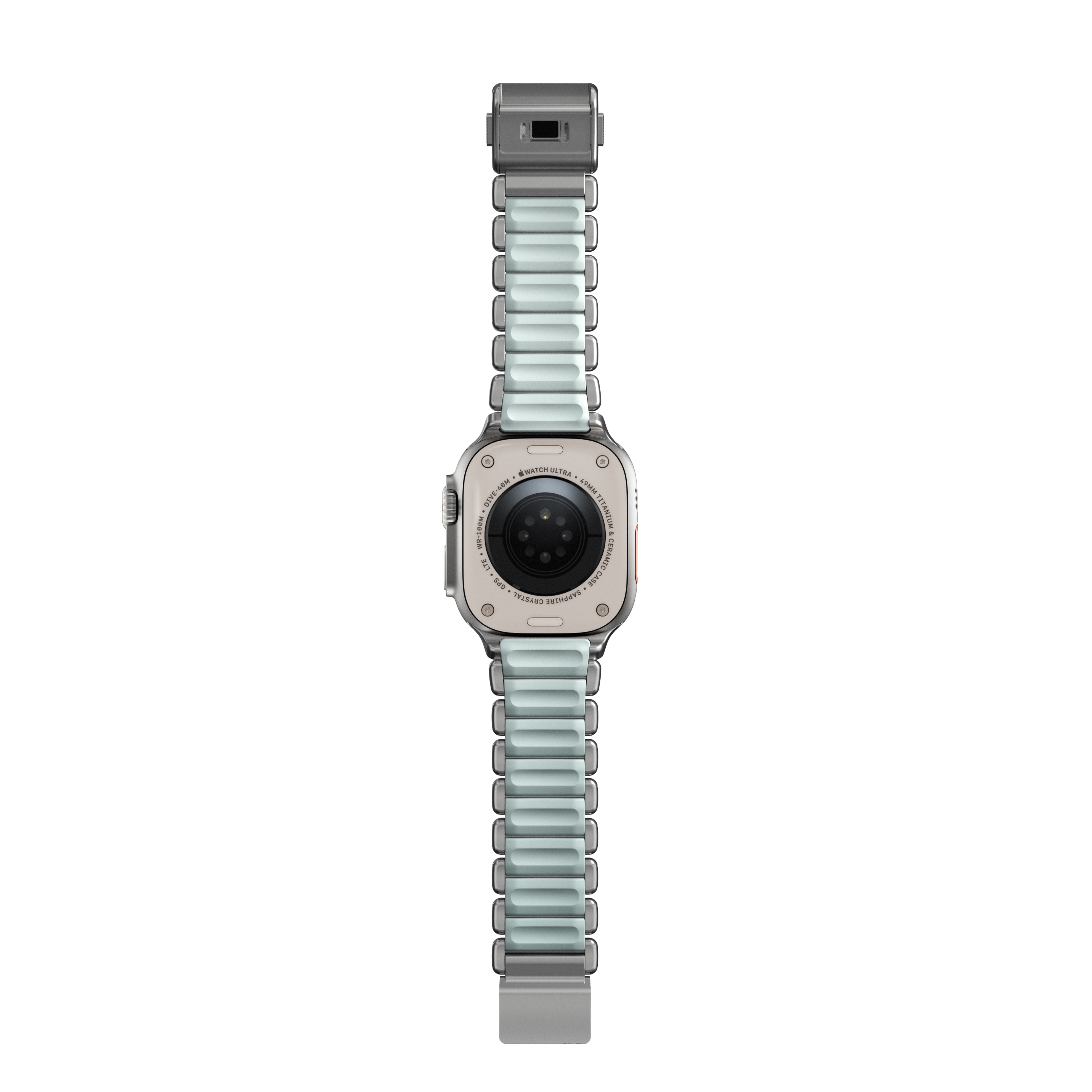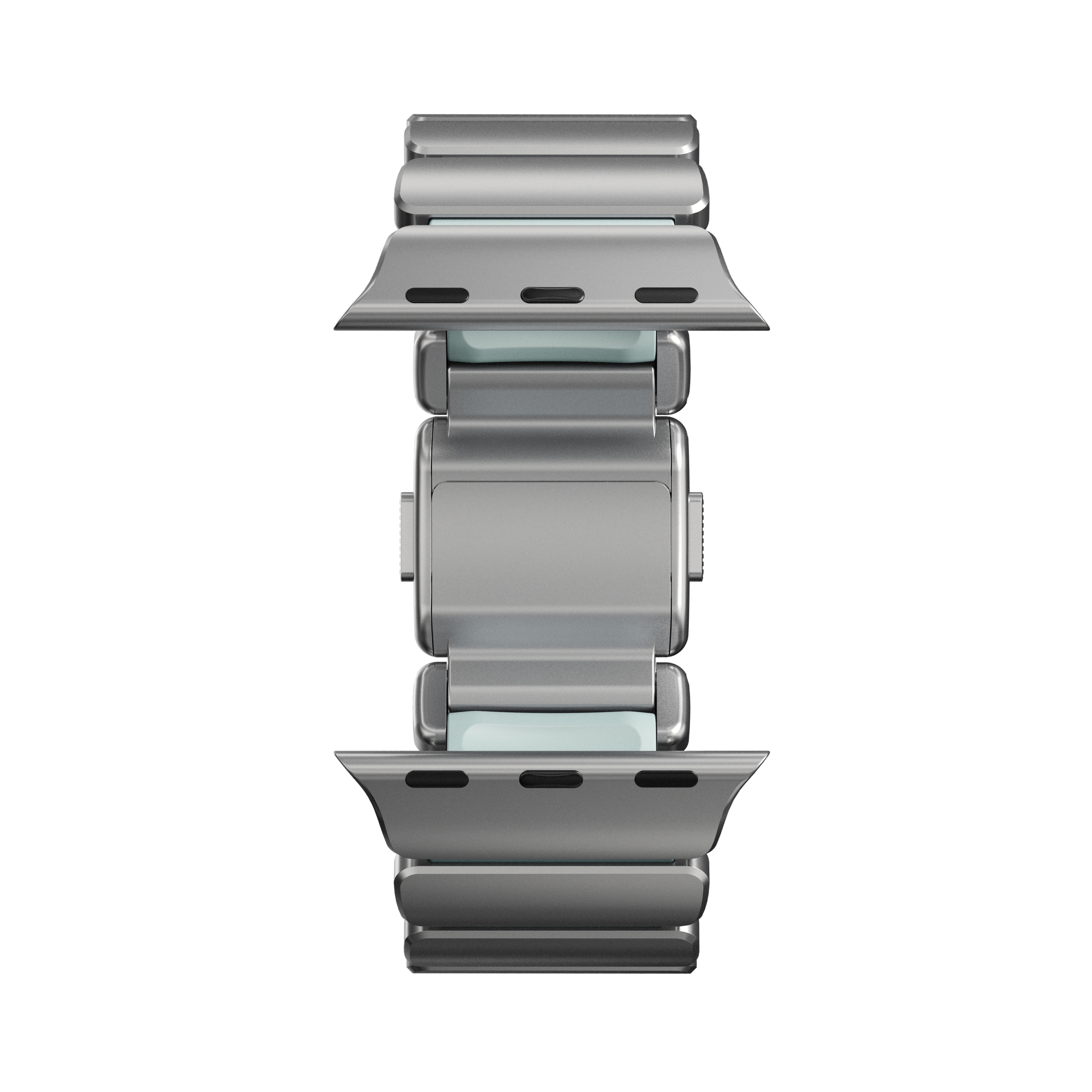Stratos Band til Apple Watch Series 8 45mm kombinerer slitesterkt titan med høykvalitets FKM-gummi for et armbånd som passer like godt til hverdagsbruk som til eventyr. Det er vannbestandig, behagelig å ha på hele dagen og motstandsdyktig mot riper takket være en solid belegg. De fleksible leddene følger håndleddet naturlig, mens den magnetiske låsen sørger for at armbåndet sitter sikkert og komfortabelt.
