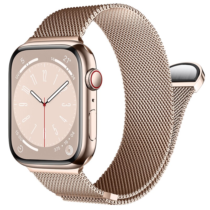 Milanese loop-reim til Apple Watch Series 11 46mm. Reimet er laget av polert rustfritt stål som gir en eksklusiv følelse og utseende. Den magnetiske spennen gjør reimet enkelt å tilpasse til armen din og hvor hardt du vil stramme klokken.