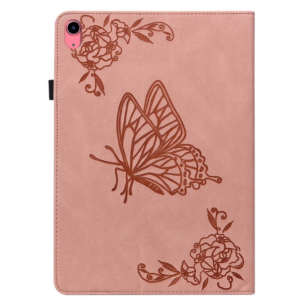 Veske med pregede sommerfugler og mønstre i læret til Apple iPad 11 11th Gen (2025). Vesken har et fint utseende og beskytter hele nettbrettet slik at du unngår skader, riper og smuss.