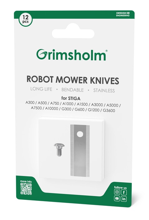 12-pakning med holdbare og effektive kniver for Stiga A 25v som gir robotgressklipperen den skarpheten den trenger for å holde plenen din perfekt trimmet. Disse knivene er laget av hardt stål designet for å sikre lang levetid og optimal klippekvalitet. Bladene gjennomgår en kontrollert herdeprosess som sikrer at knivene beholder sin fleksibilitet, noe som minimerer risikoen for at de brytes hvis gressklipperen skulle treffe en stein eller et annet hardt objekt.