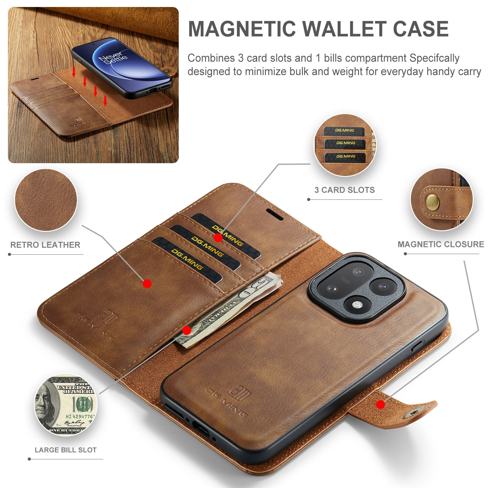 DG.MING etui med avtagbart magnetiskt deksel til OnePlus 15. Vesken har en klassisk og stilig design. Det avtagbare skallet betyr at du ikke trenger å bruke hele etui, for eksempel når du er hjemme eller på jobb.