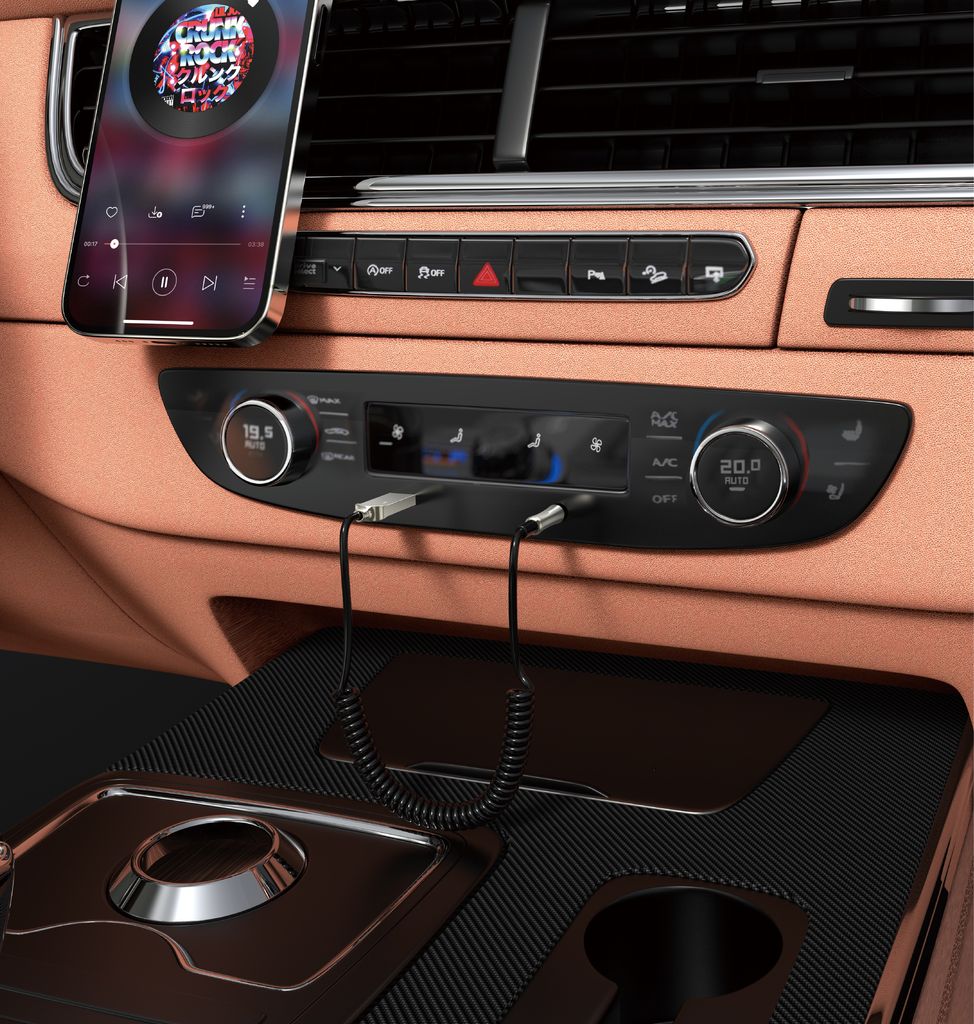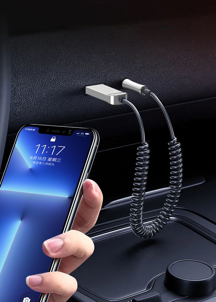 SiGN Bluetooth AUX mottaker for bil med spiralkabel 1m er en praktisk løsning for trådløs lyd i bilen. Koble mottakeren enkelt til bilens USB- og AUX-utgang og spill musikk direkte fra smarttelefonen uten kabel mellom enhetene. Den innebygde mikrofonen gjør det mulig med handsfree samtaler slik at du kan snakke i telefon uten å miste fokus på kjøringen. Med intelligent IC får du stabil tilkobling og klar lyd uten forstyrrelser. Kan også brukes med andre enheter som har 3.5mm tilkobling som for eksempel høyttalere. Den fleksible spiralkabelen gir enkel bruk og tilpasser seg etter behov.