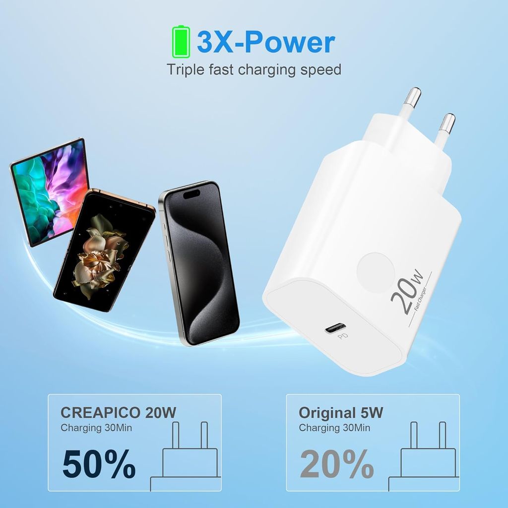 <p>Med en utgangseffekt på opptil 20W kan du hurtiglade kompatible enheter raskt og sikkert. Den intelligente ladeteknologien beskytter mot overlading, overoppheting og overspenning, noe som sikrer trygg bruk. Den kompakte og lette designen gjør laderen enkel å ta med, perfekt for hjemmet, kontoret eller reiser.</p>